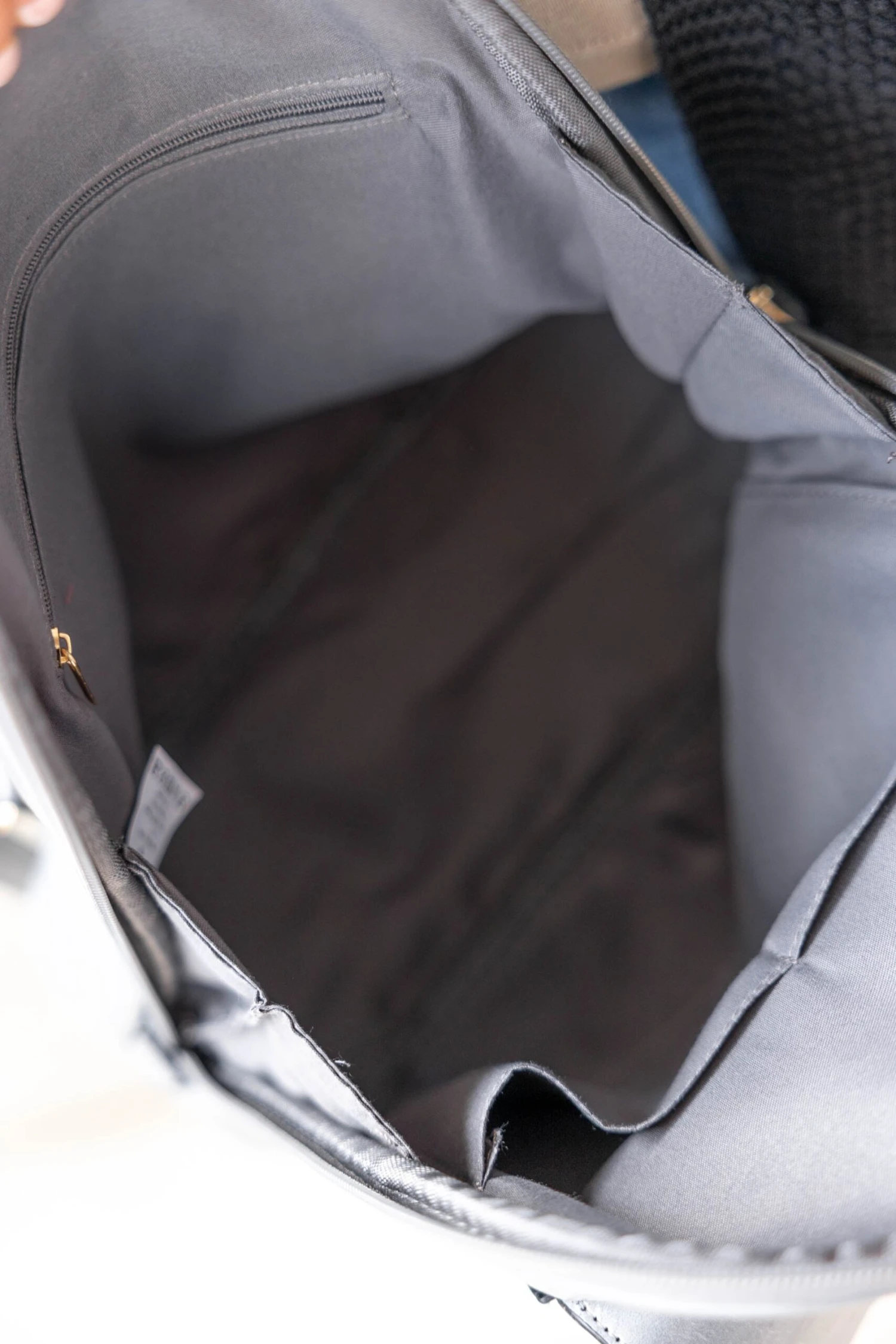 Keep all your belongings perfectly packed in this cutie! The bold grey color and gold accents are just what you need to keep everything in place! Pair this backpack with your favorite dress and booties for a chic, trendy look!