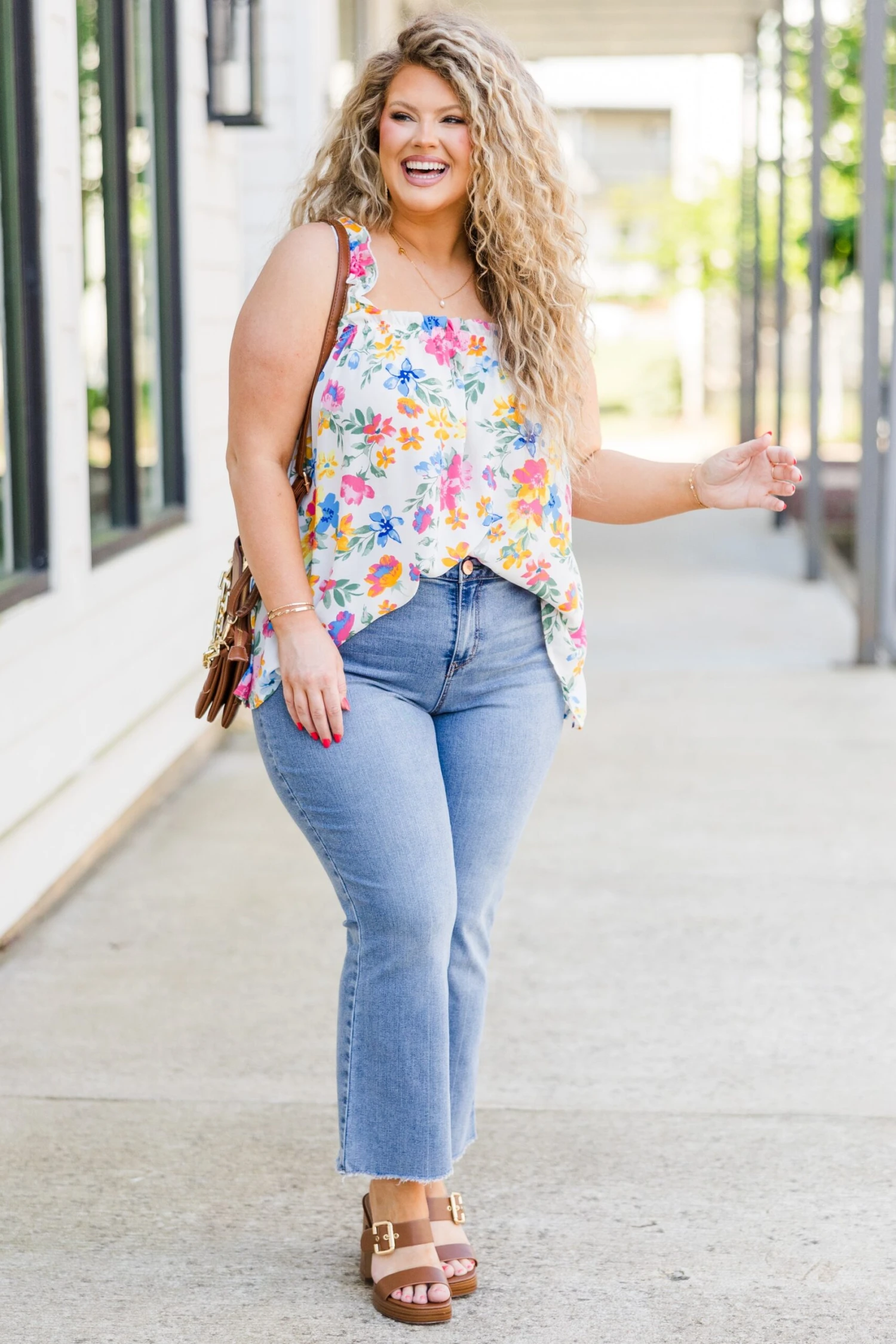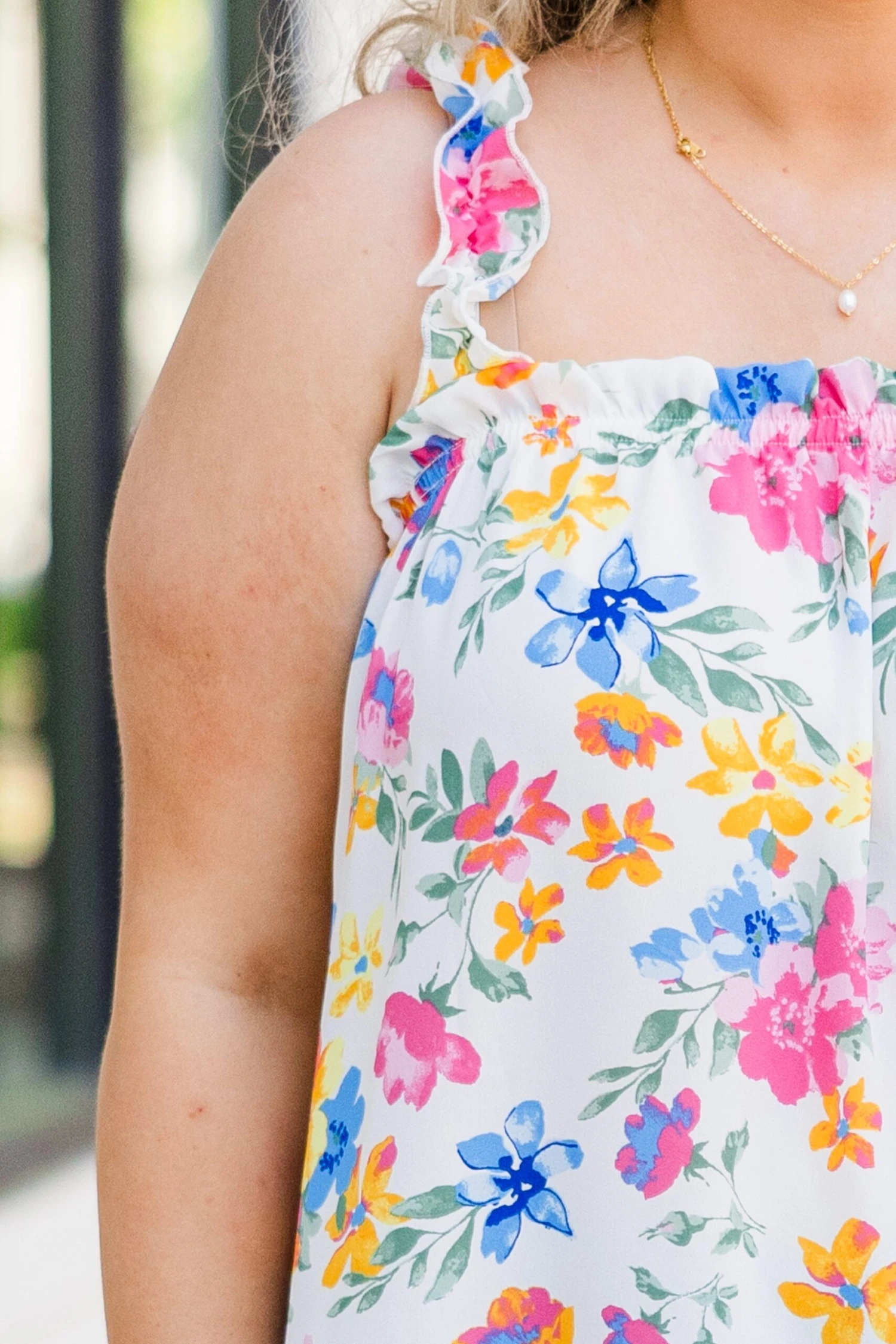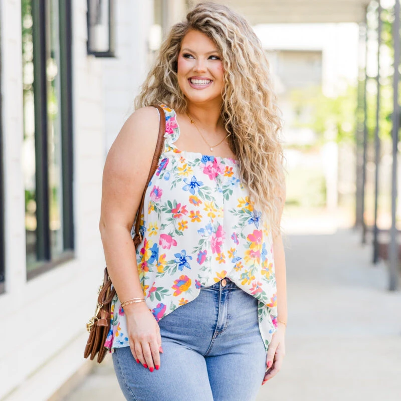 We simply adore this top! It features a lightweight design perfect for pairing with a cute cami and denim! The beautiful floral pattern adds a touch of elegance, while the ruffled detailing adds a feminine touch that is perfect for the season!