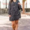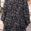 Get ready to turn heads in this dress! This dress features a stunning ditsy floral print and subtle ruffle detailing that adds a touch of whimsy! The smocked sleeves and babydoll silhouette create a flattering and comfortable fit! This will be your go-to dress for looking fabulous all throughout fall!