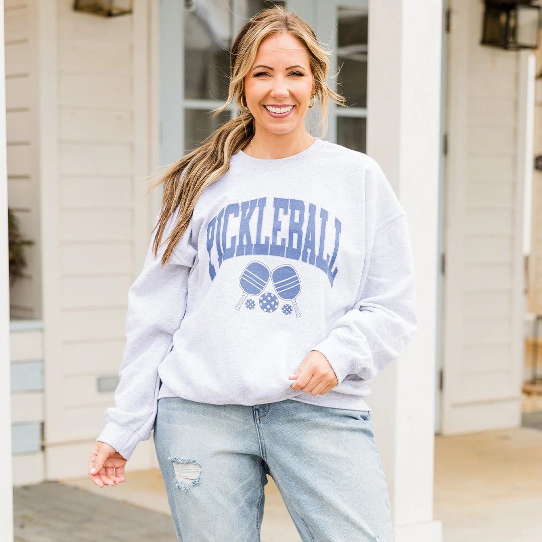 You + this sweatshirt = star of the show! This sweatshirt tee has a neutral color with an adorable graphic perfect for the pickleball lovers out there! It’s comfortable for all-day wear and easy to pair with all of your favorite jeans and leggings for a casual chic look!