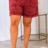 Experience comfort and style with our Picnic Pace Shorts! The cabernet color and acid wash design make them a unique addition to your wardrobe! The elastic waistband and functional drawstring provide a perfect fit!