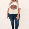 Plaid is so trendy for this season! This trendy tee has a simple graphic design with neutral colors you can pair with everything in your wardrobe! It’s comfortable for all-day wear, has a fit to flatter your figure, and is perfect for the season! Style this top with skinnies or shorts for a fun and flirty look!Â