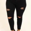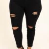 Add these jeans to your plans to grab for today and tomorrow! These jeans have a classic black color and a trendy distressed design that is a season favorite! Dress these jeans up with a cute blouse and heels or keep it casual with a graphic tee and slides for a comfy, chic look!
