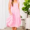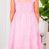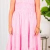 This dress is sweeter than your favorite song! It is a perfect combination of style and functionality! The smocked bodice provides a flattering fit, while the pretty barbie pink color and plaid pattern add a touch of charm! The ruffle detailing and functional pockets make this dress unforgettable!
