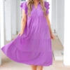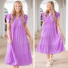 This dress is so stunning! The lavender color will have all eyes on you and the midi length is so trendy! We love the ruffle sleeves that are so sweet and the babydoll style that is flattering on everyone! Style this with some heels or sandals for a super chic look!