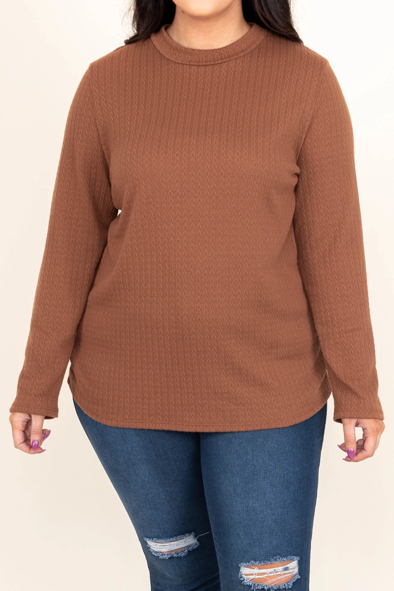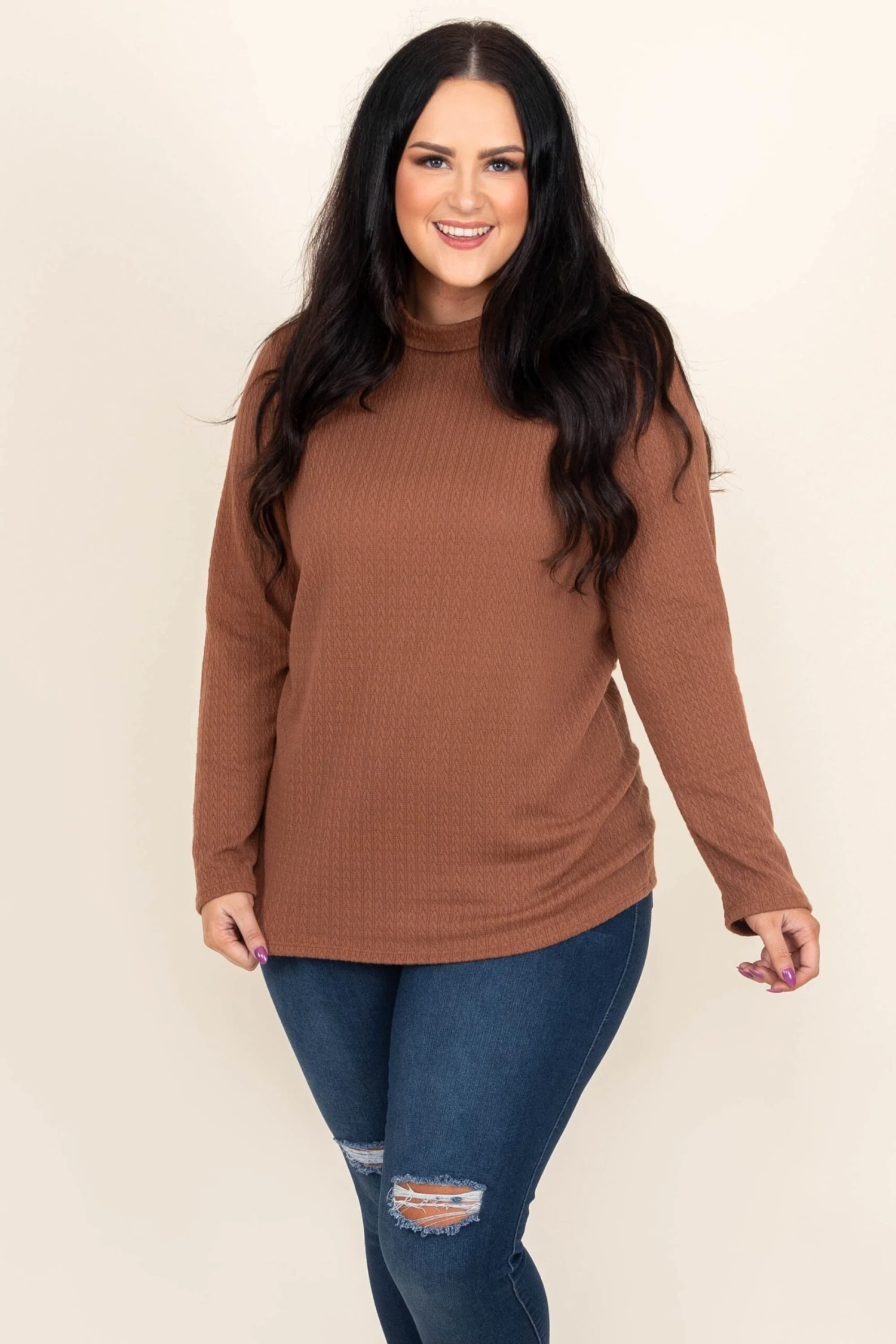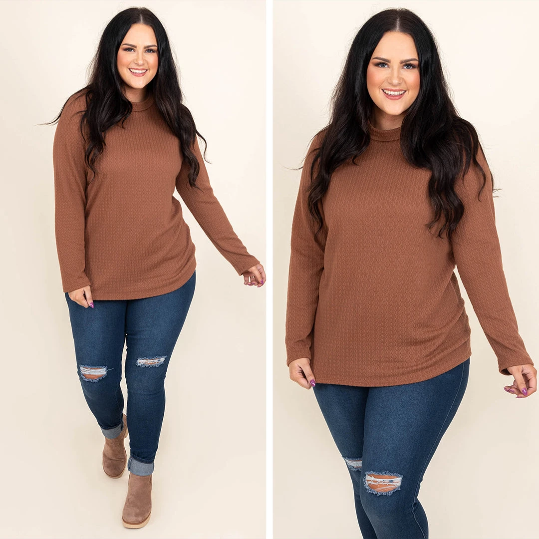 You’ll have so many pleasant memories in this beautiful top! This top has a bold mocha color with a ribbed texture and high neckline that is so sweet! The stretchy, figure flattering fit is perfect to pair with all of your faves! Style this top with skinnies and booties for a classic chic look!