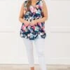 Show off your bold and fun side with this tank in navy! This abstract print tank is versatile – pair it with your favorite jacket or cardigan, or rock it on its own! Let your outfit do the talking!