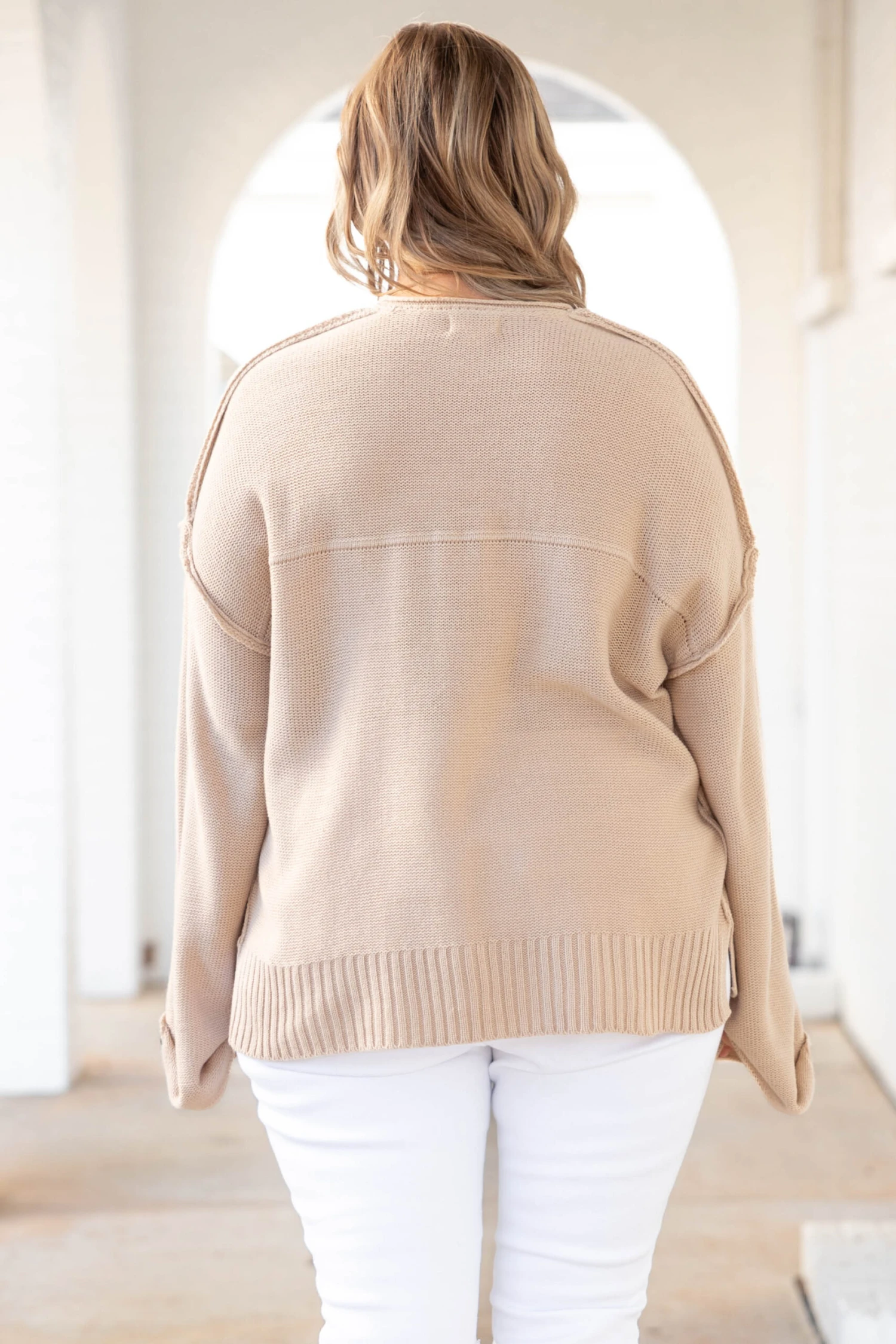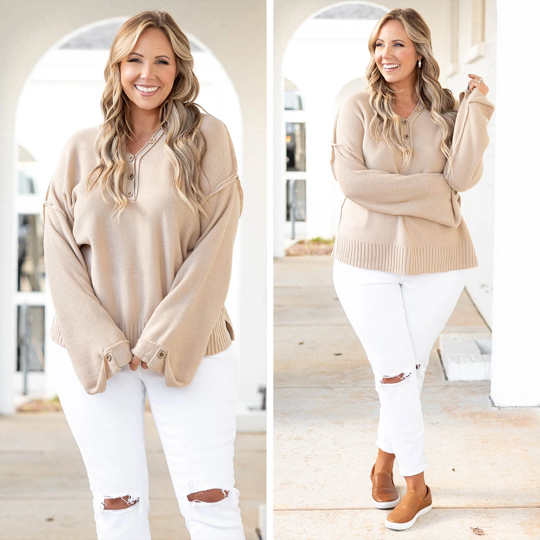 Say yes to adding this beauty to your wardrobe! This top has a soft beige color with a comfy material and bell sleeves that are so trendy! The stretchy, figure flattering fit and ribbed hemline is perfect for everyday wear! Style this top with skinnies or leggings for a classic chic look!