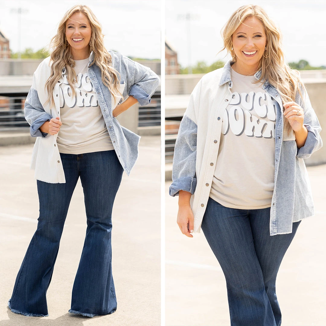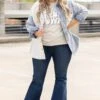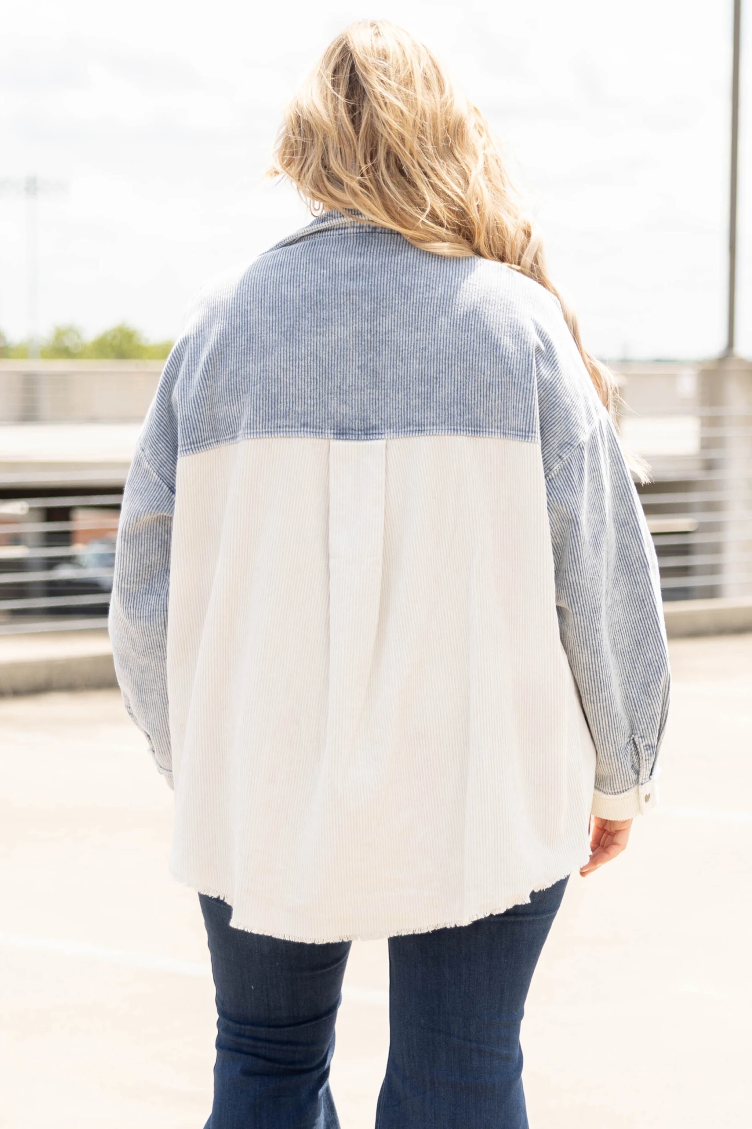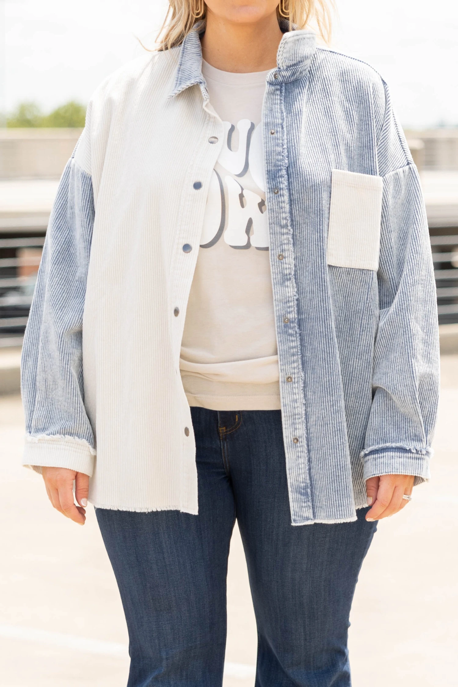 You need this shacket in your wardrobe point blank, period! The lovely striped texture and blue color are season favorites! Whether you are wearing this as a layering piece or on its own, this is the perfect piece for you! Style this shacket with a cute tee and jeans for a comfy, casual look!