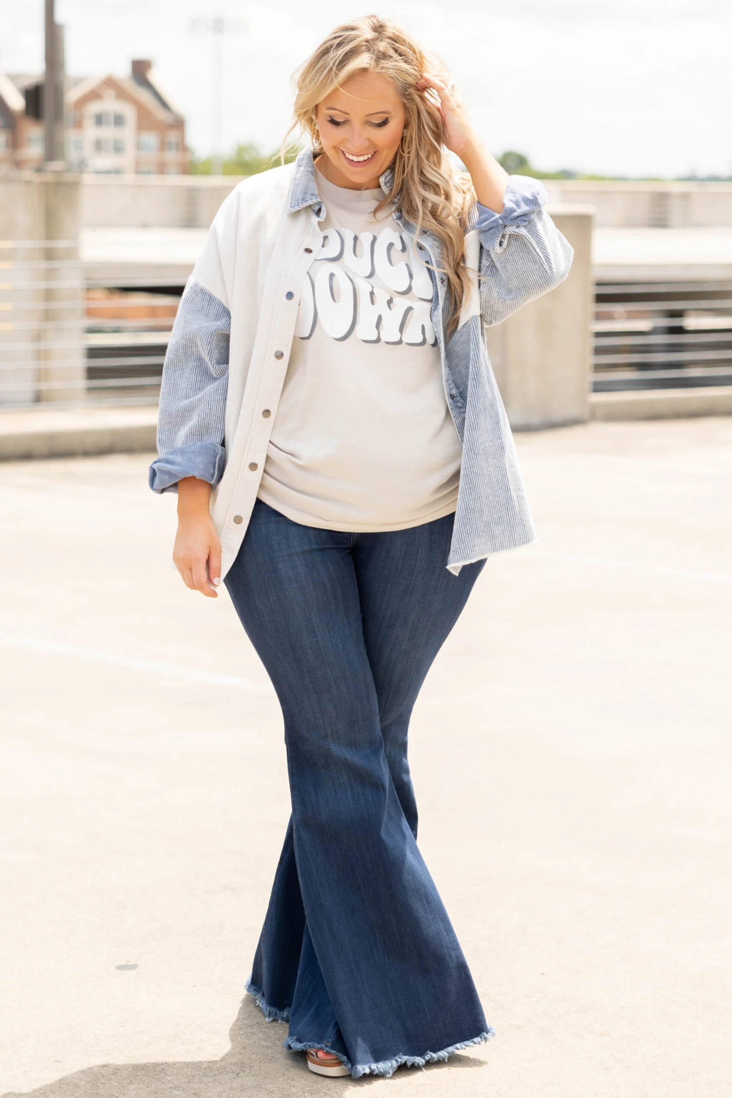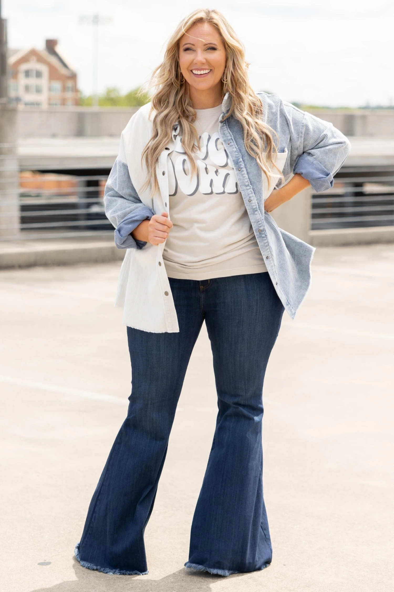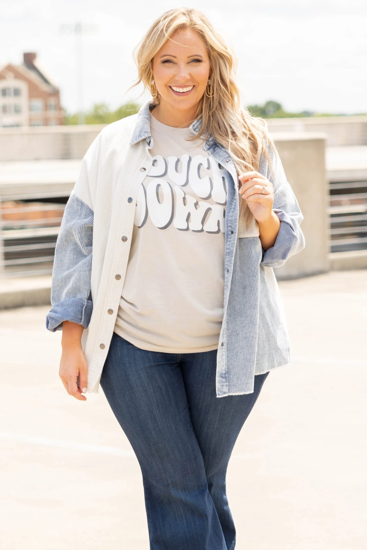 You need this shacket in your wardrobe point blank, period! The lovely striped texture and blue color are season favorites! Whether you are wearing this as a layering piece or on its own, this is the perfect piece for you! Style this shacket with a cute tee and jeans for a comfy, casual look!