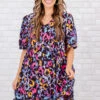Elevate your style game with this dazzling dress! This sleek babydoll dress features functional pockets and a playful leopard multi color pattern for a touch of flair! Perfect for any occasion, dress it up or down for a look that’s both functional and fashionable!
