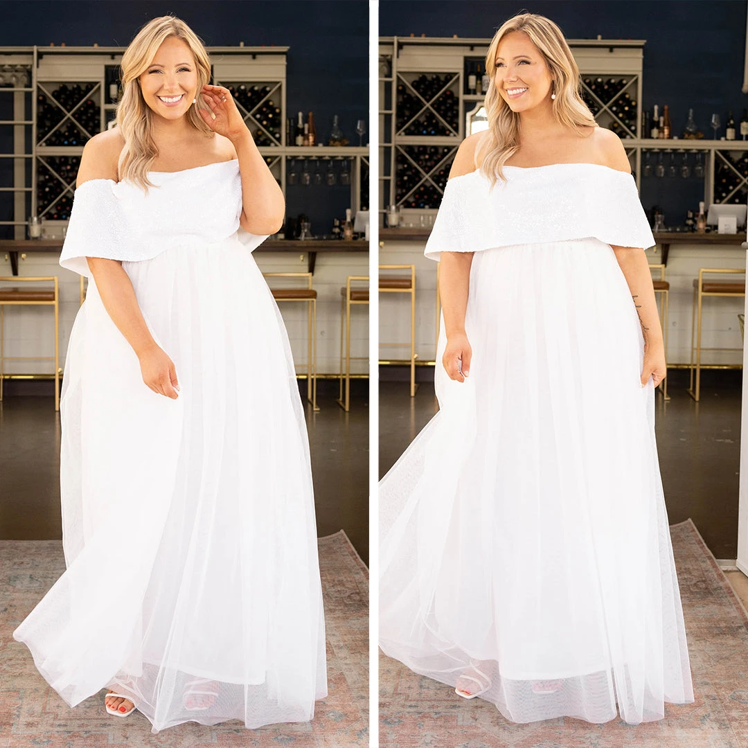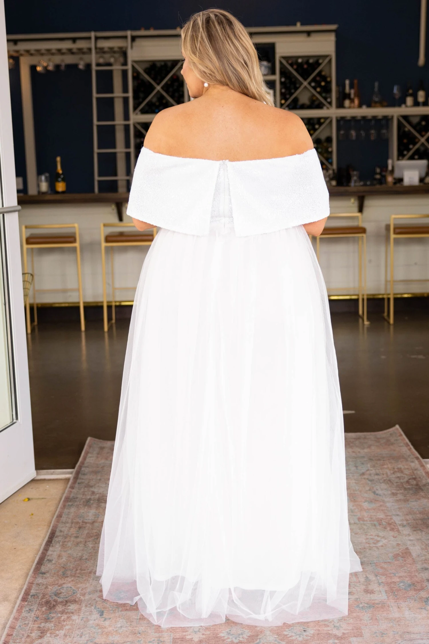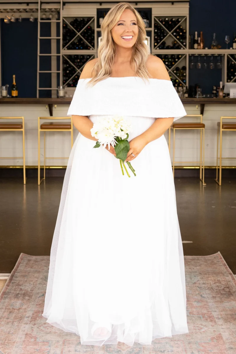 You will feel as posh as a princess in this dress! The white color is so stunning and the tulle skirt is perfect for dancing and twirling! The off-the-shoulder look is so trendy and the flowy style will keep you so comfy! Style this with some heels and delicate accessories for a totally elegant look!