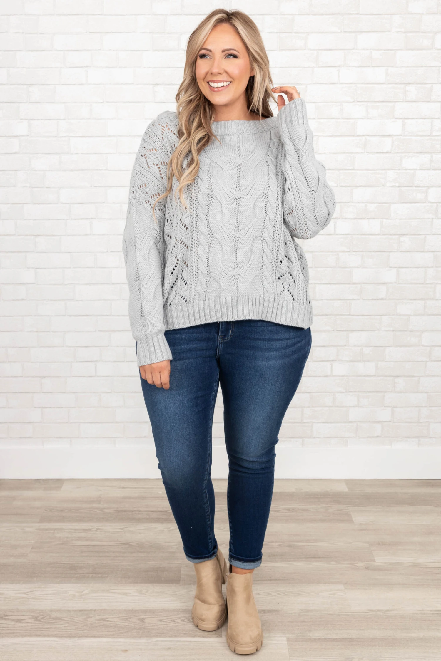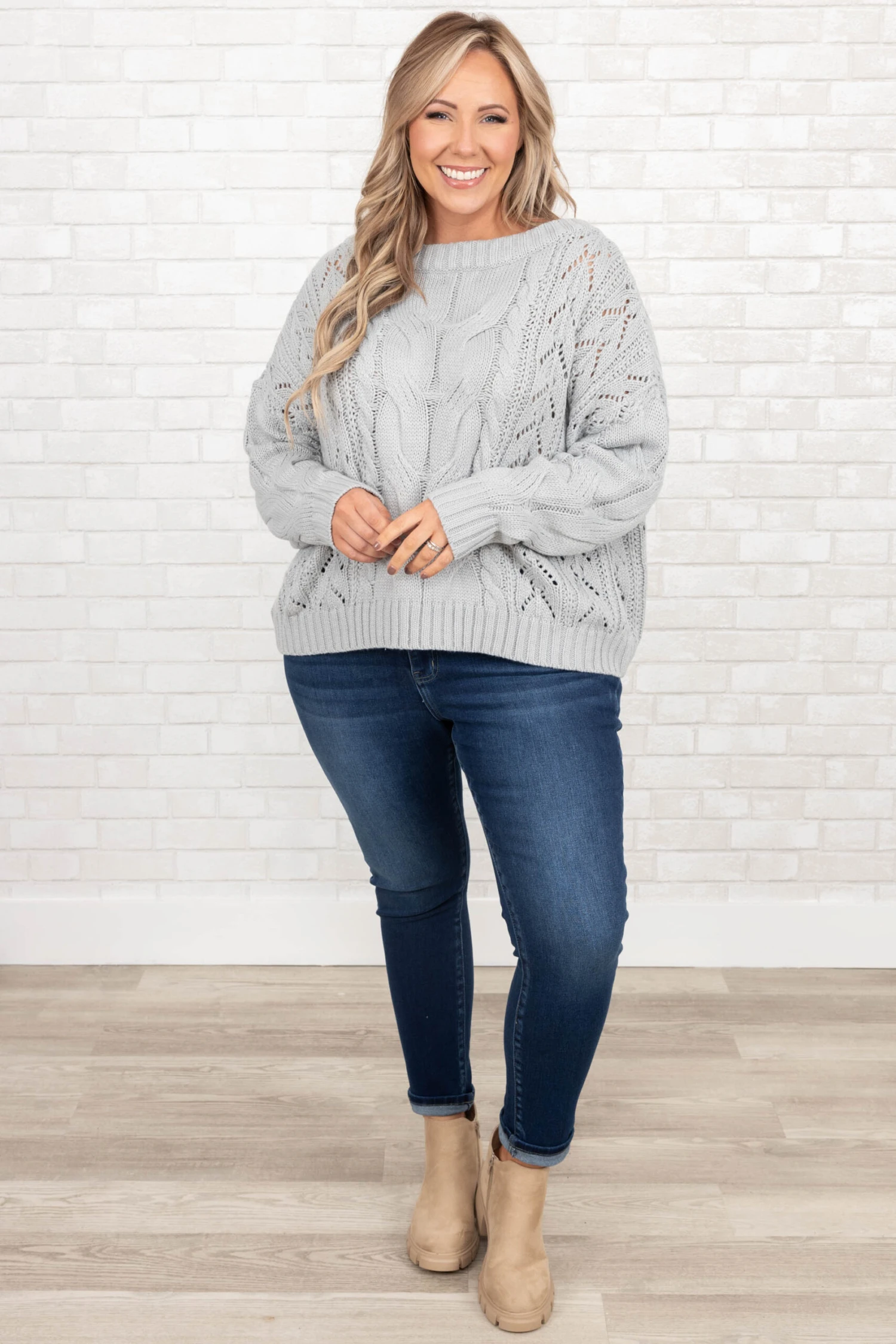 The energy this sweater gives off is so powerful! This sweater has a lovely gray color with a knitted design that so is comfy and sweet! The stretchy, cozy fit is perfect for those cool days this season! Style this sweater with some skinnies and booties for an unforgettable look!