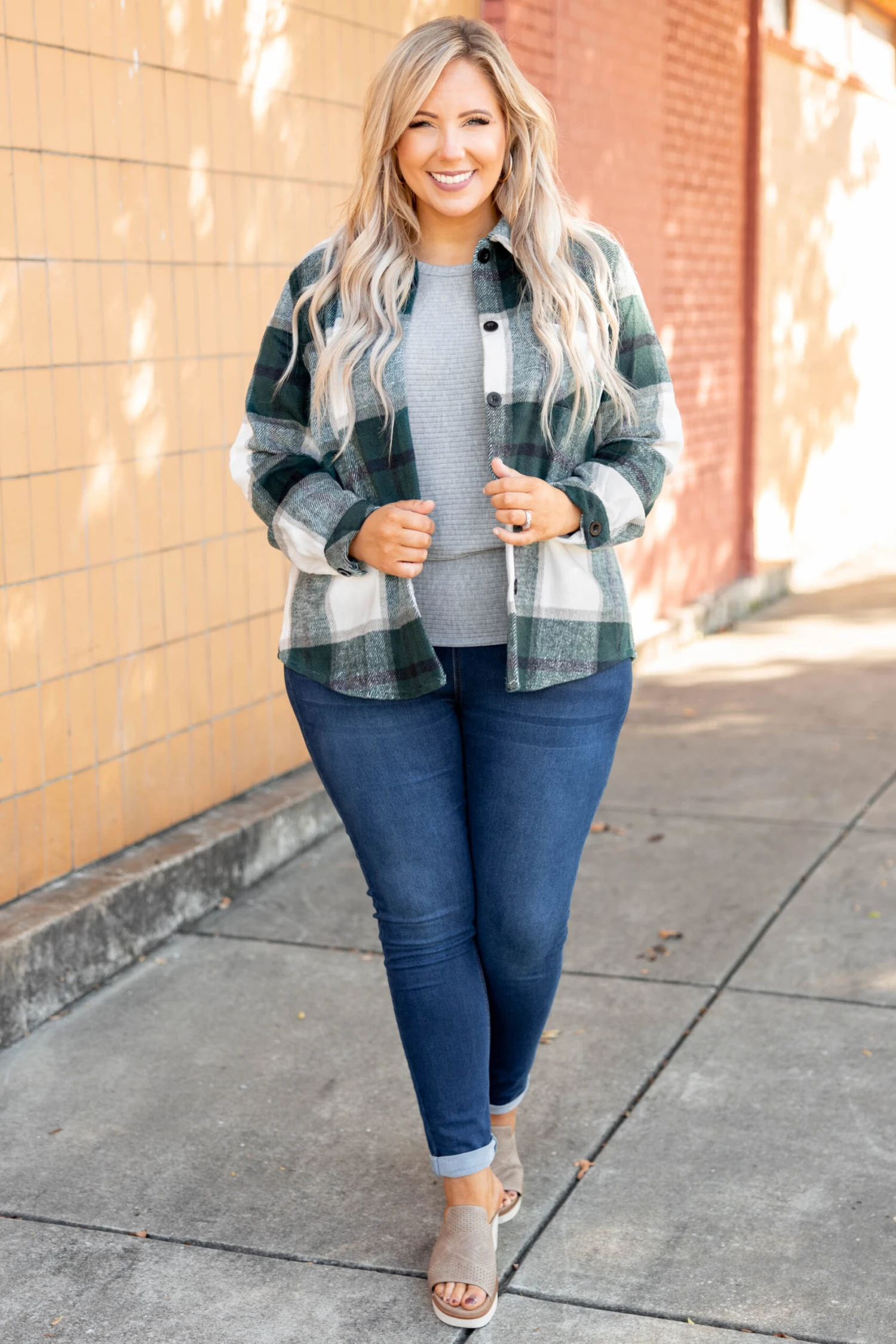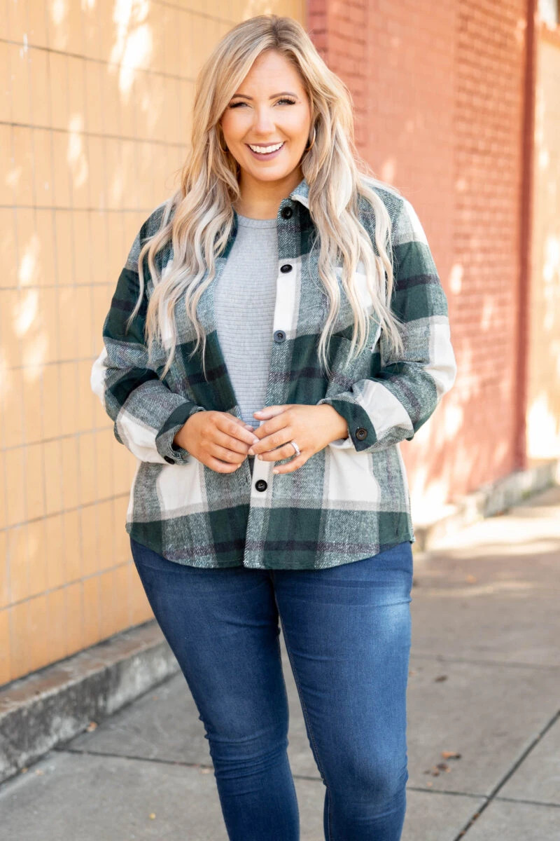 You’ll be so fly, it’ll be a little bit scary in this trendy jacket! This jacket has a fun plaid print with green and white colors you can style with your favorite pieces! It’s comfortable for all-day wear, has a flowy fit, and features the cutest frayed hemline! Wear this jacket with a patterned top and skinnies for an effortlessly chic look!Â