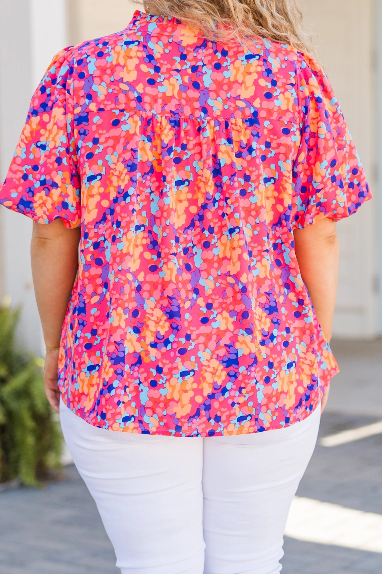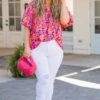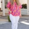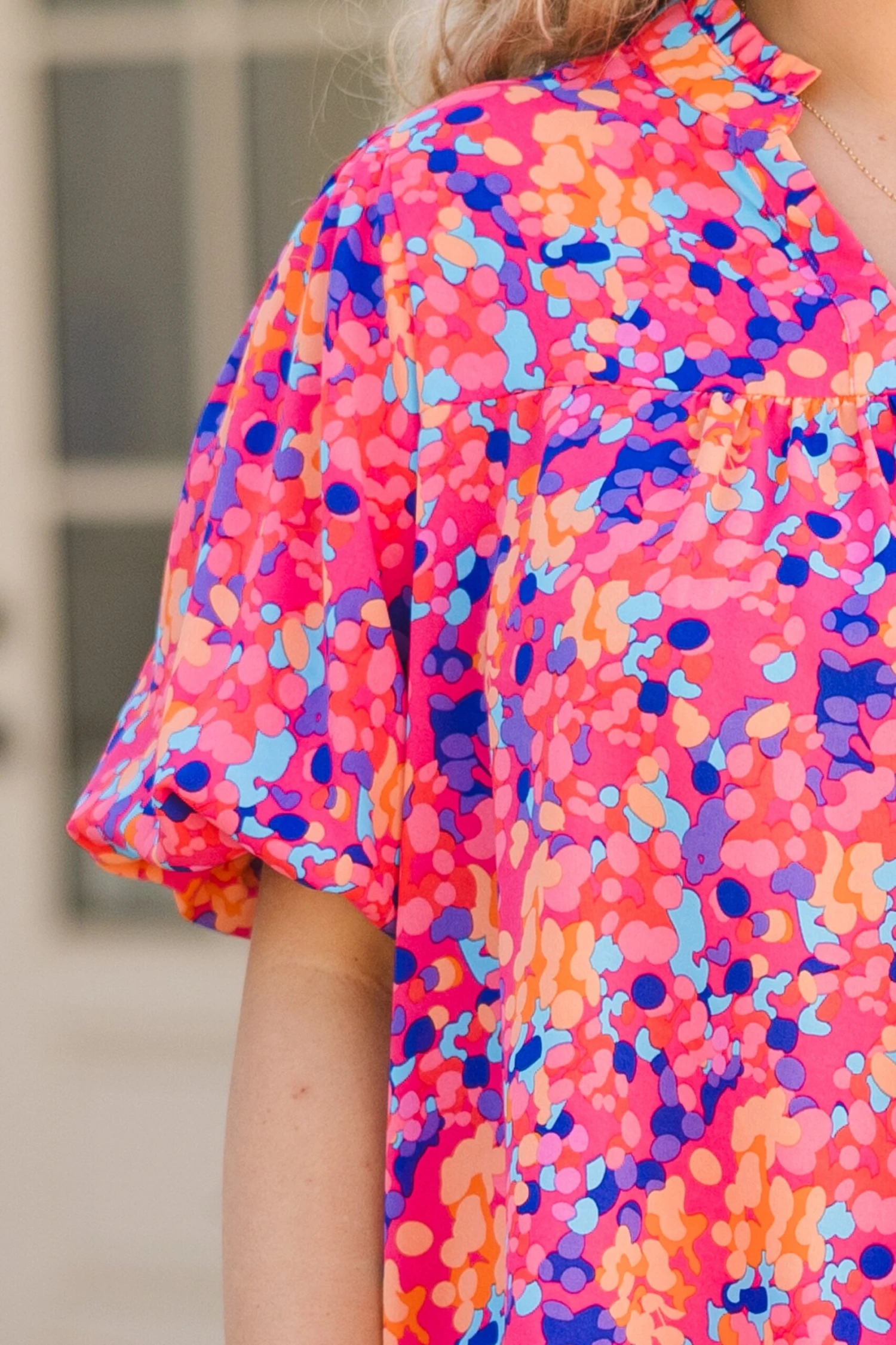 Sugar, spice, and everything nice, this top has got you covered! With elastic bubble sleeves, bold hot pink color, and a lovely floral pattern, this top is sure to become your new favorite! Pairs perfectly with any bottoms and accessories for a playful and stylish look!Â