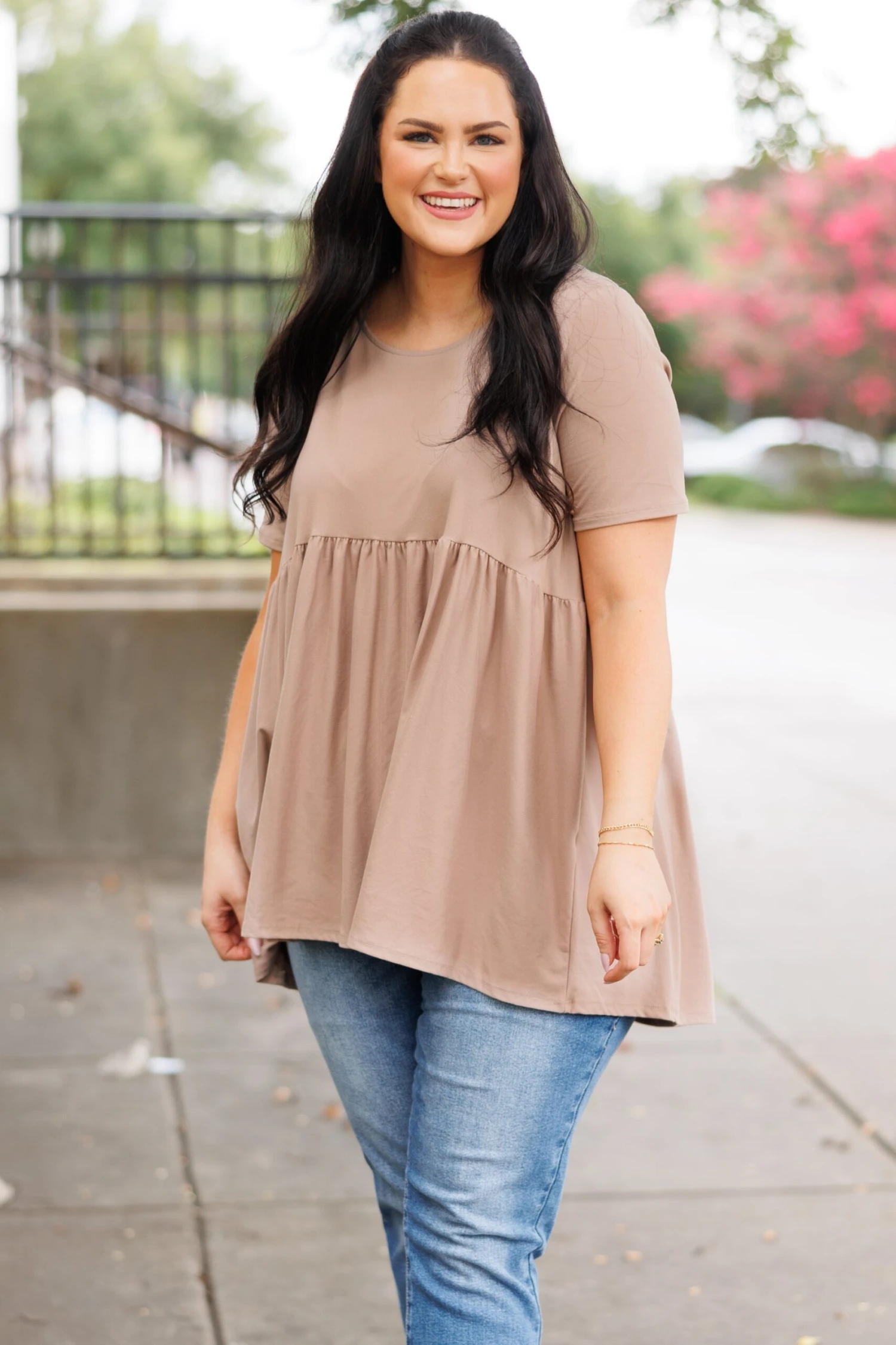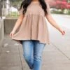 Look like a total princess in this top! The ash mocha color is so pretty and the babydoll style is one of our favorites! The flowy style of this is sure to look good on everyone and the basic style is so easy to dress up or down! Style this with some skinnies and sandals to make them say wow!
