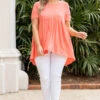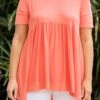 Look like a total princess in this top! The deep coral color is so pretty and bold and the babydoll style is one of our favorites! The flowy style of this is sure to look good on everyone and the basic style is so easy to dress up or down! Style this with some white denim and sandals to make them say wow!