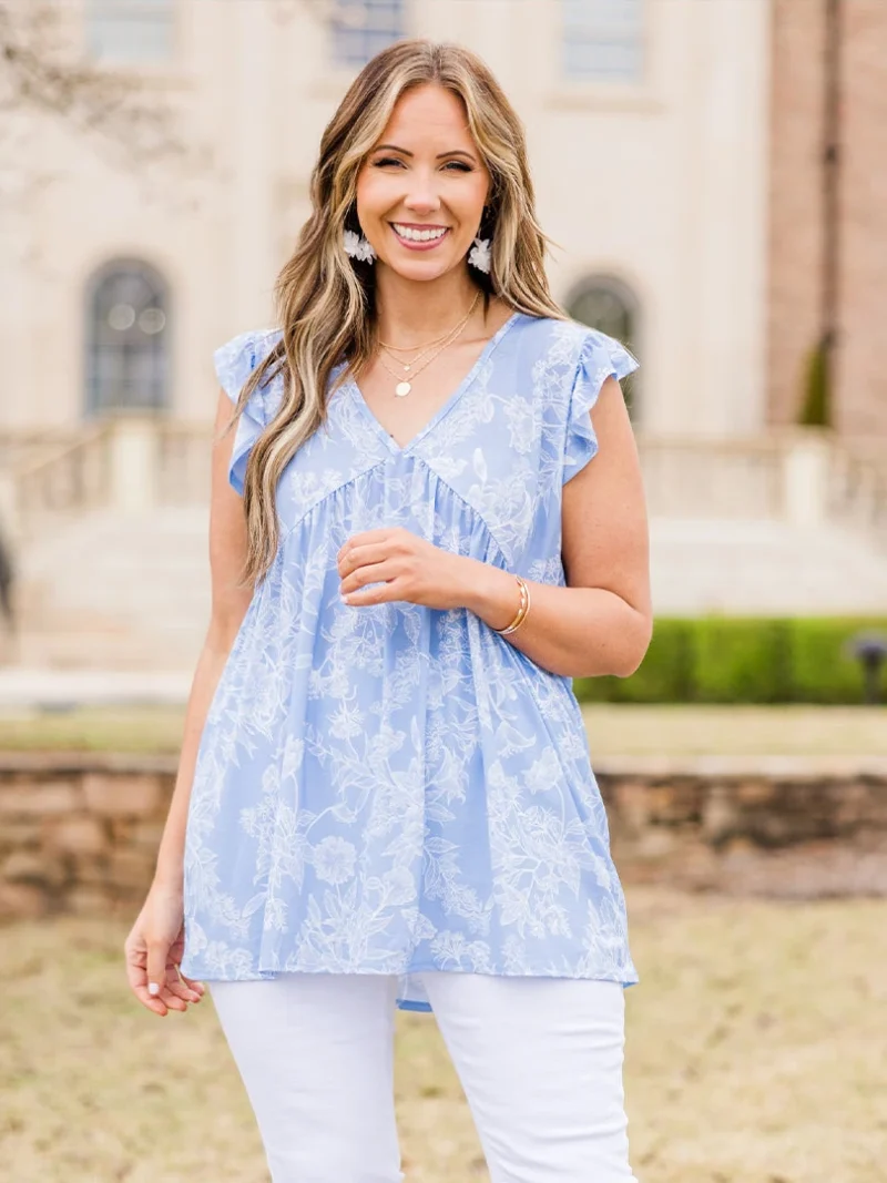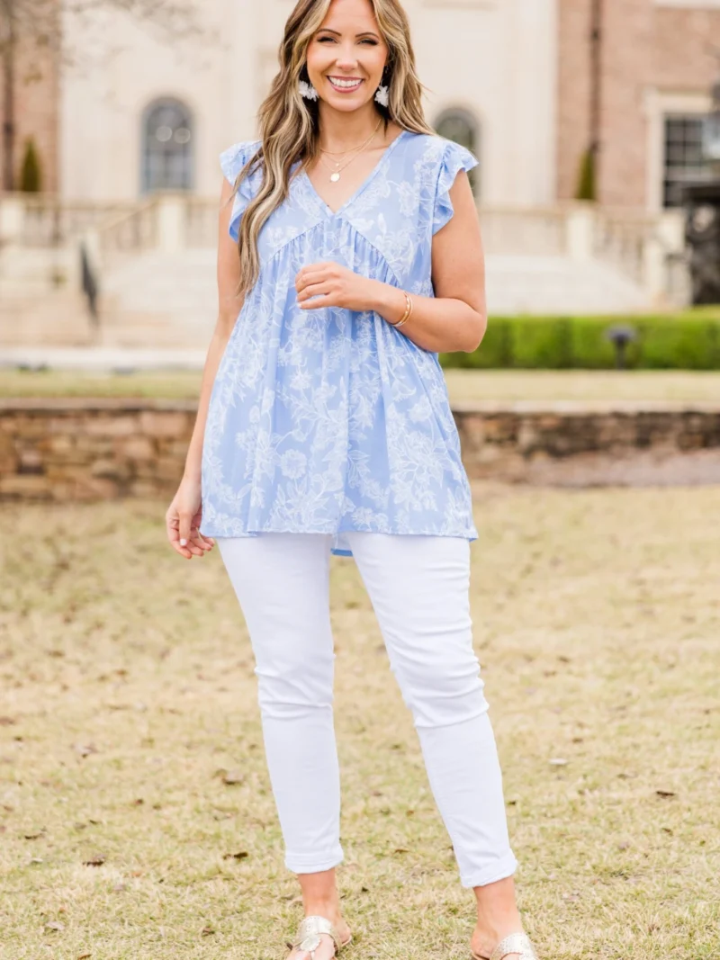 What A Time Babydoll Top, Light Blue