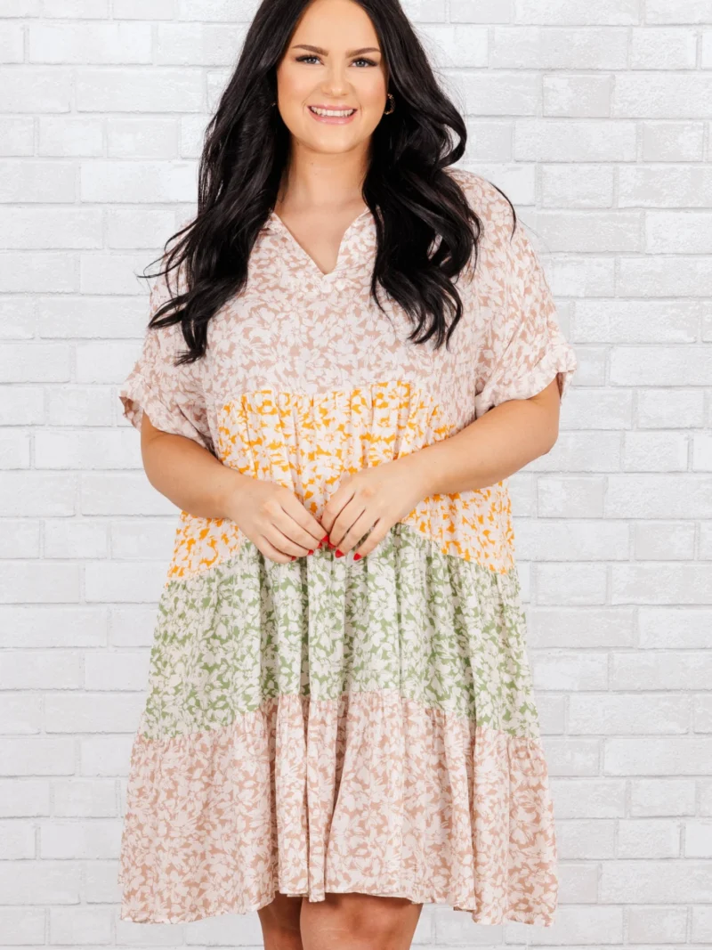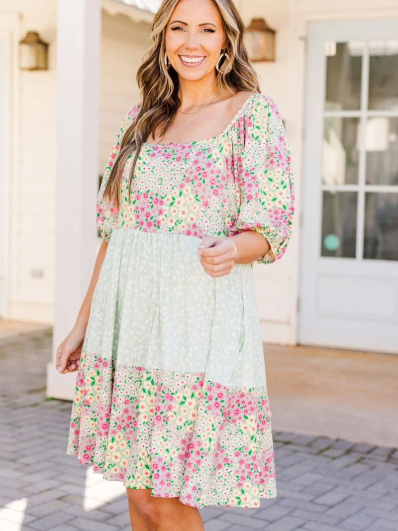 Be Gleeful Dress, Sage-Yellow