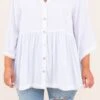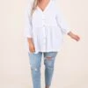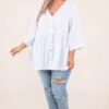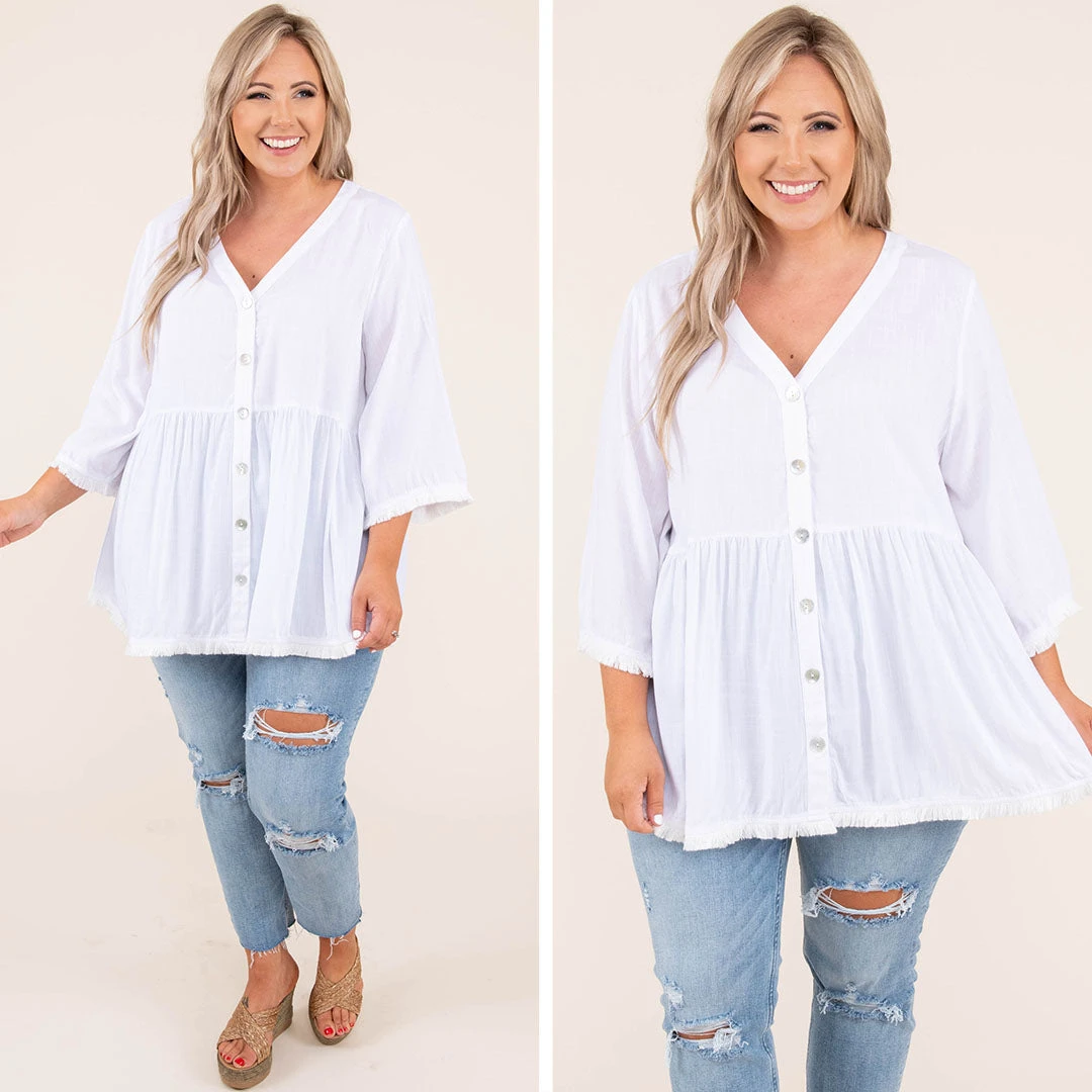 Have fun under the sun in this top! It has a flirty and feminine design with a figure-flattering fit you’ll want to wear all day long! It’s light and flowy to keep you cool on warm summer days and has the cutest ruffled sleeves! Not to mention how easy the solid ivory color is to pair with your favorite shoes and accessories! Style this top with skinnies and wedges for an effortlessly chic look!