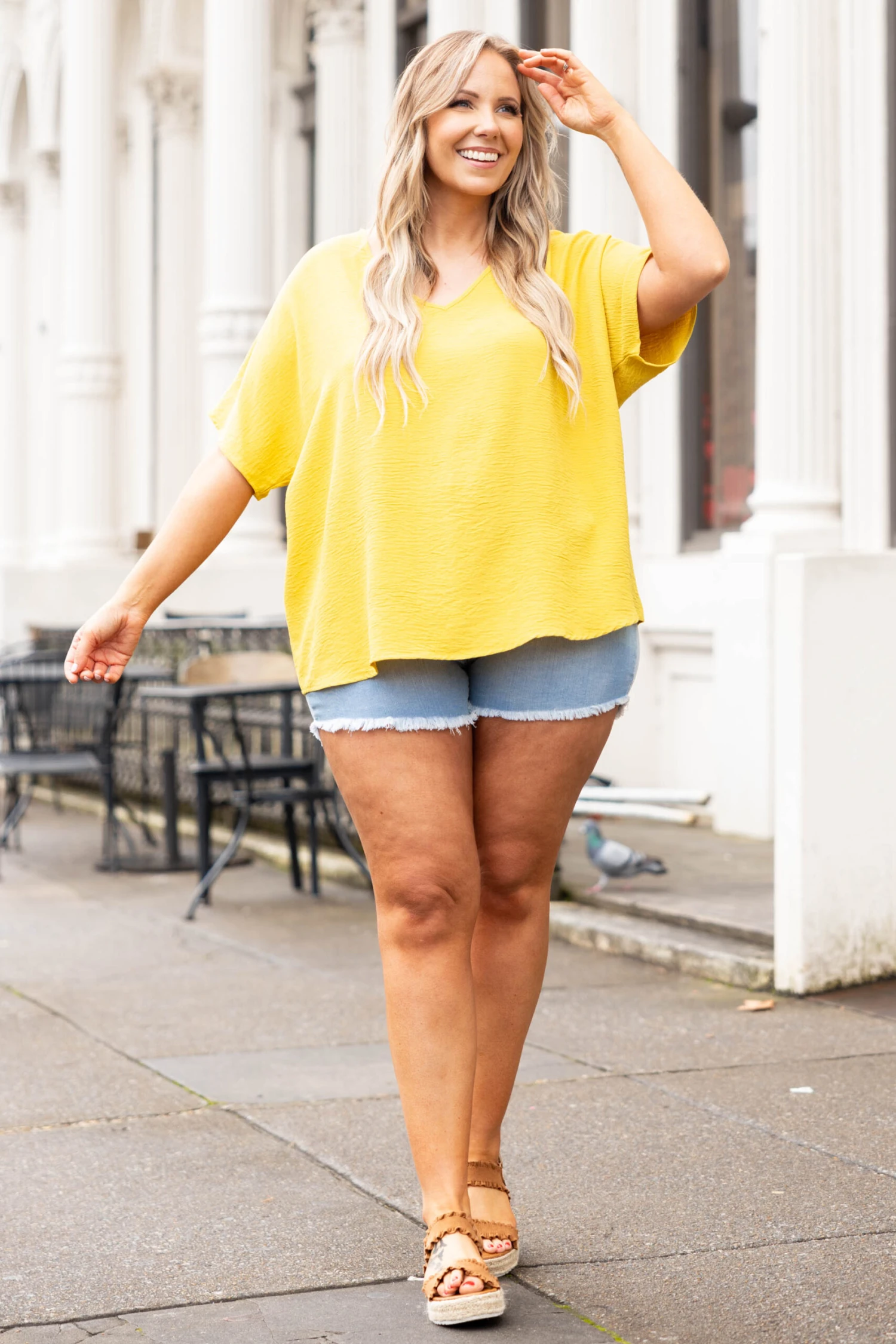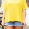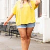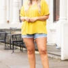 You will look like a queen in this top! It has a stunning golded kiwi color that will be so fun for spring! Pair this with your fave jeans or shorts and sandals for a chic style!