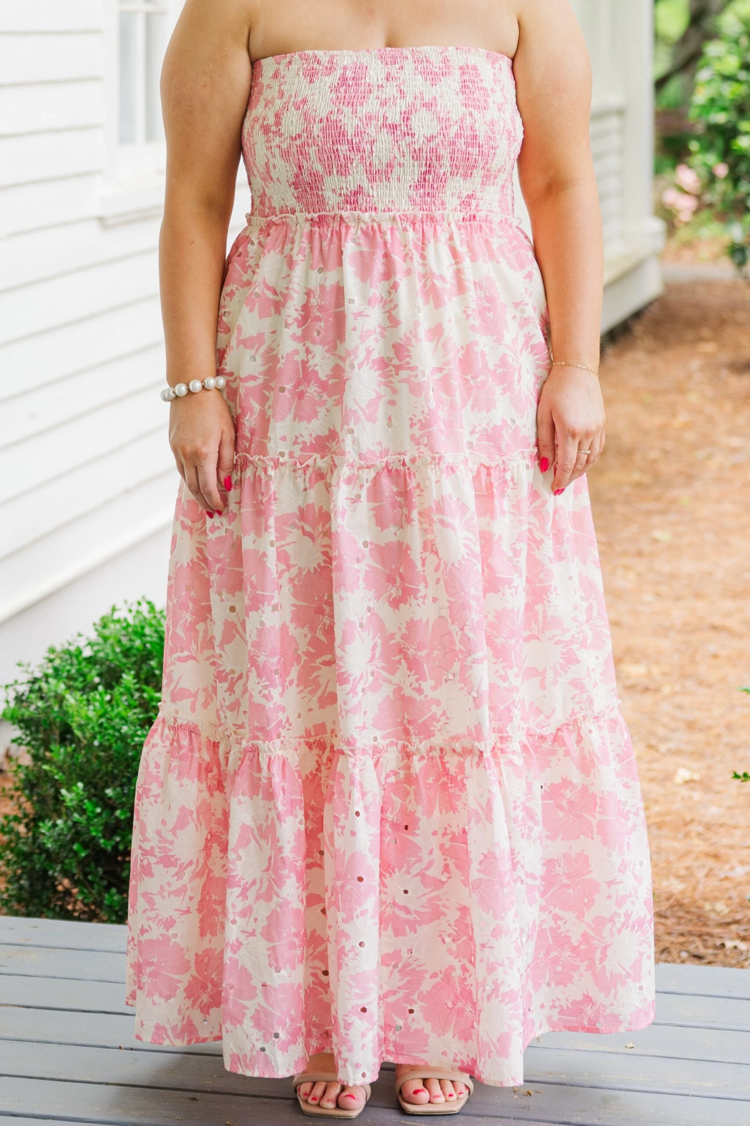 Experience perfection with our exquisite strapless dress in a captivating shade of pink, crafted from high-quality fabric for a luxurious feel and undeniable look! The smocked bodice ensures a flattering and comfortable fit, while delicate floral patterns add a touch of romantic charm to its captivating silhouette! Functional pockets seamlessly blend into the design, offering both style and practicality for your convenience! Whether you’re dancing the night away or strolling through a sun-kissed garden, this dress promises to enchant the room around you wherever you go!