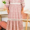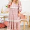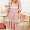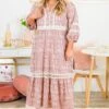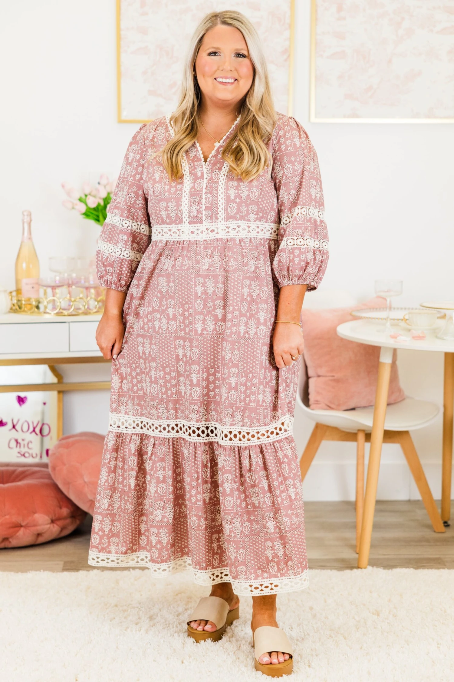 Add a touch of bohemian charm to your wardrobe with this dress! This maxi dress features a beautiful mauve pink color and intricate crochet detailing! The zipper back and elastic cuffs provide a comfortable and secure fit! Perfect for any occasion, this dress will have you feeling effortlessly stylish!