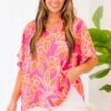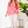 Radiate happiness wherever you go in this lovely top! Featuring a beautiful floral pattern and bold colors, this flowy top is perfect for the season! Whether you’re off on a resort trip or just want to add some cheer to your day, this top will dazzle the crowd wherever you go!