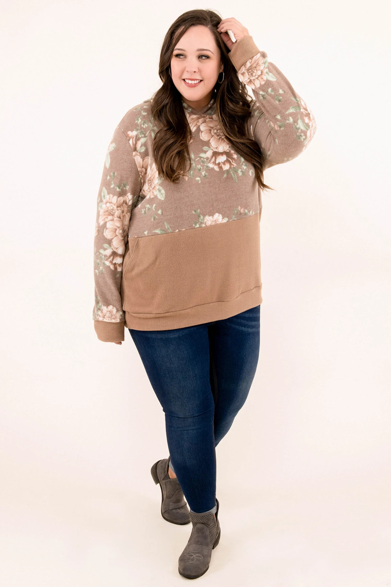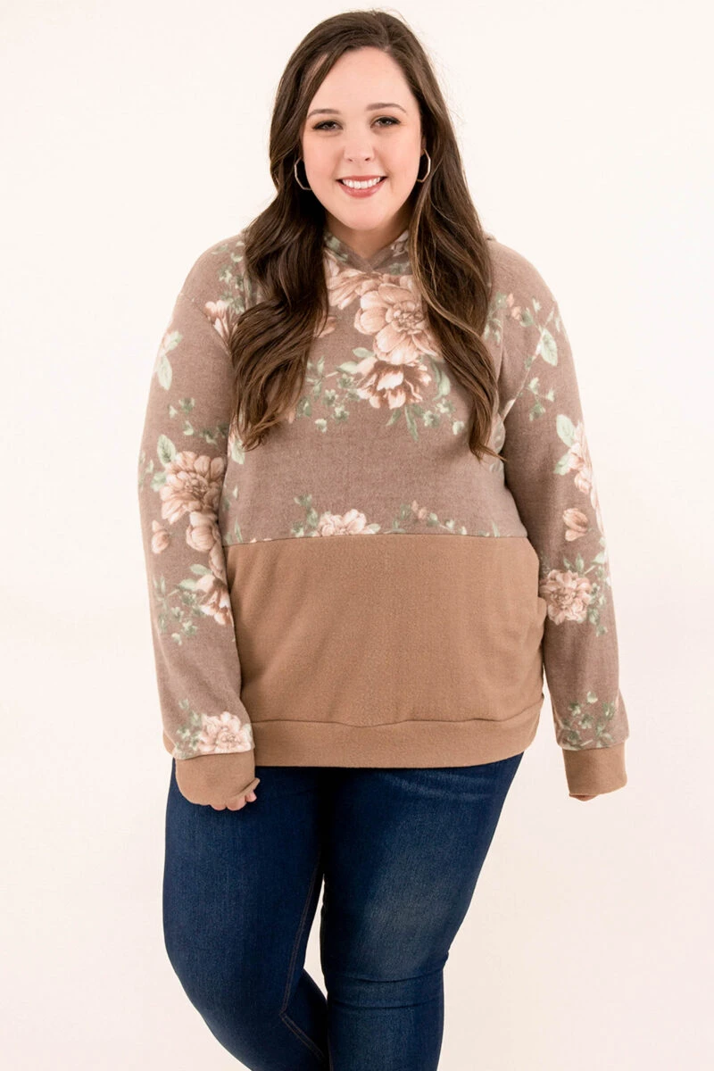 You will want to live in this hoodie! It has a super soft fabric, trendy colorblocking and a fun floral print. Style with leggings or jeans for an easy to wear look!