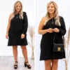 A toast to how good you will look in this dress! This dress is stunning and perfect for all of your special occasions! It features a cute bubble sleeve the sleeve and an off-the-shoulder design that we adore! We see this dress paired with your favorite heels and accessories for a chic night on the town!Â