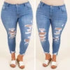 Reach for the stars in these jeans! These have a distressed style to keep you trendy and a medium color that can be paired with anything! Style these with any top for a great look every single time!