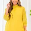 You’ll be ready for anything in this adorable top! This top is perfect for any occasion! The high neckline, stylish swiss dot pattern, and bold mustard color make this an ideal wardrobe staple! The timeless design will take you from a brunch date to the office in style!