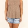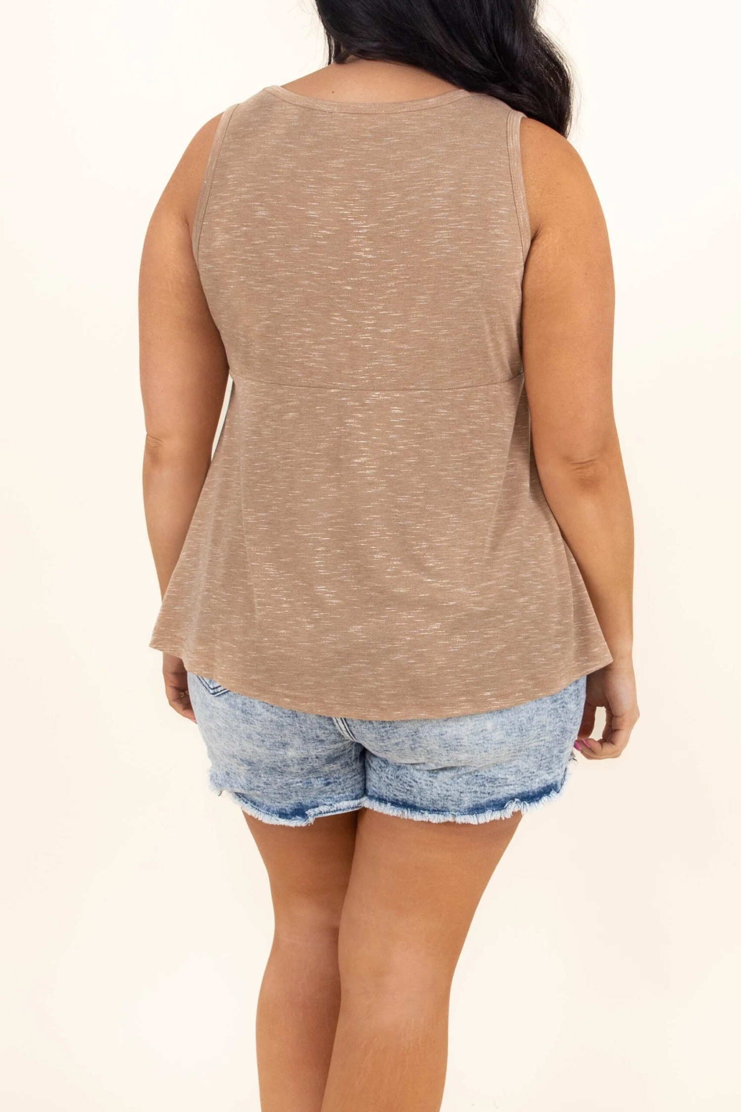 Get ready to love this pretty tank! This tank has a neutral taupe color you can dress up or down and style with your favorite shoes and accessories! It’s comfortable, figure-flattering, and an absolute necessity for every woman’s wardrobe! Pair this tank with skinnies or shorts for an effortlessly chic outfit!