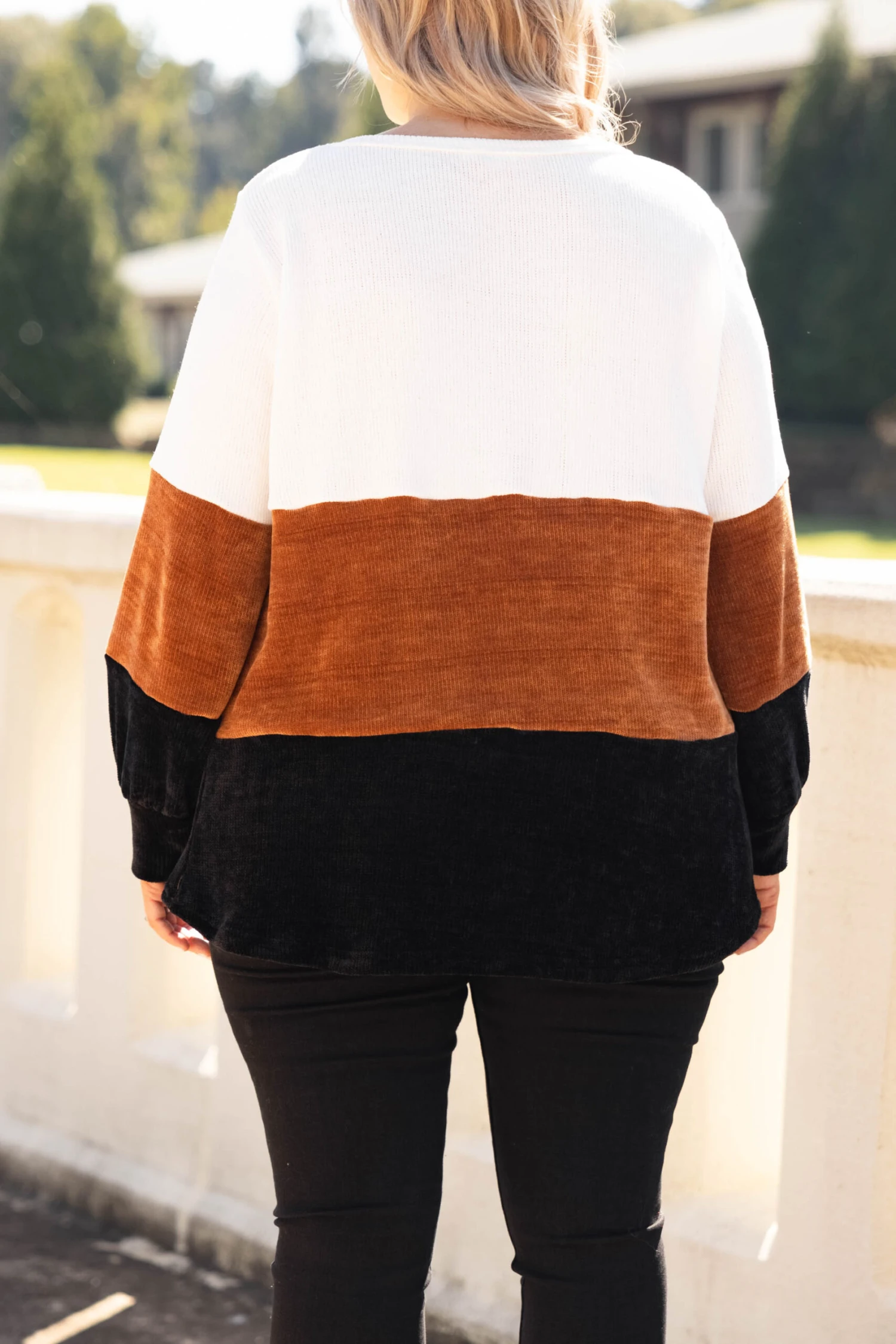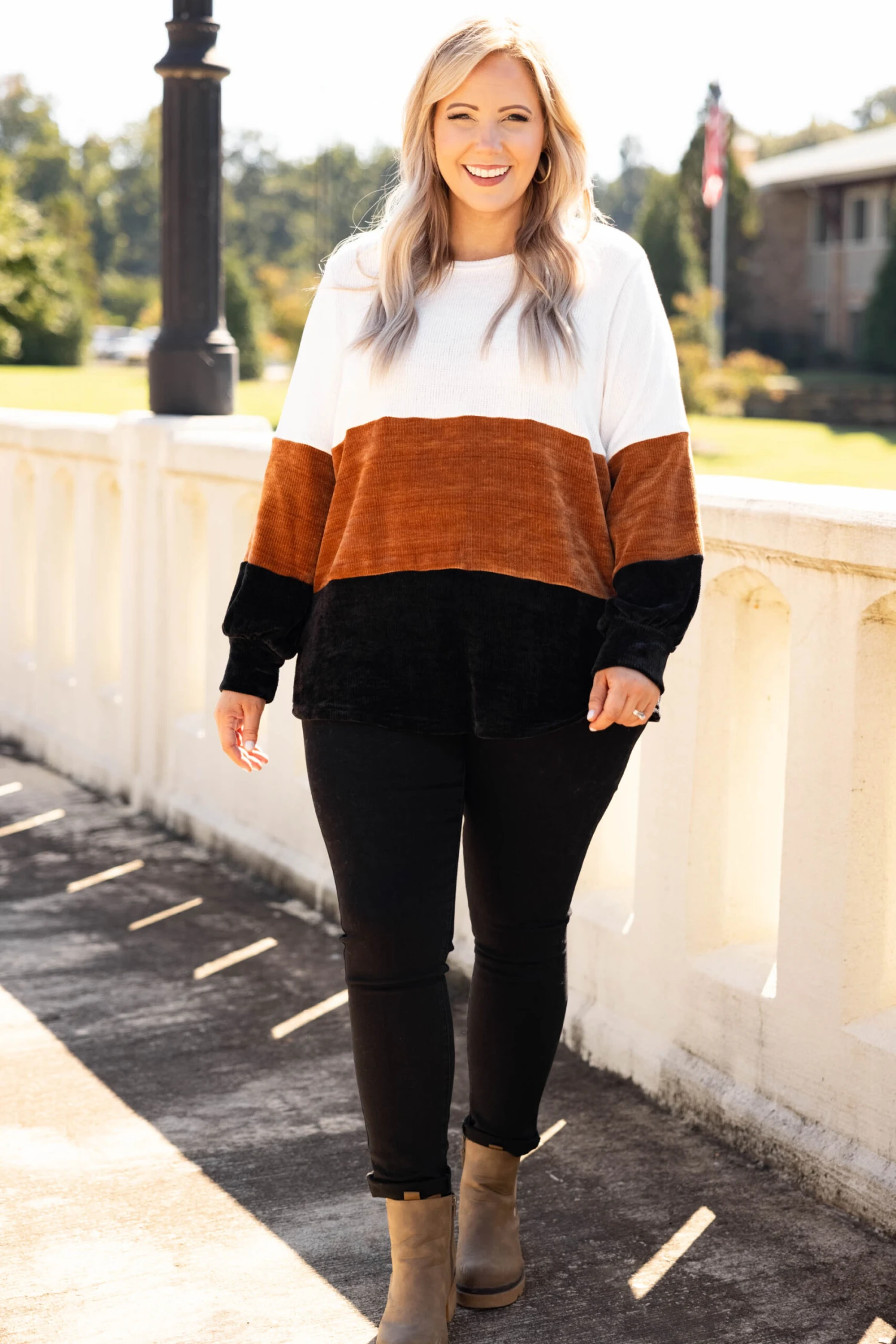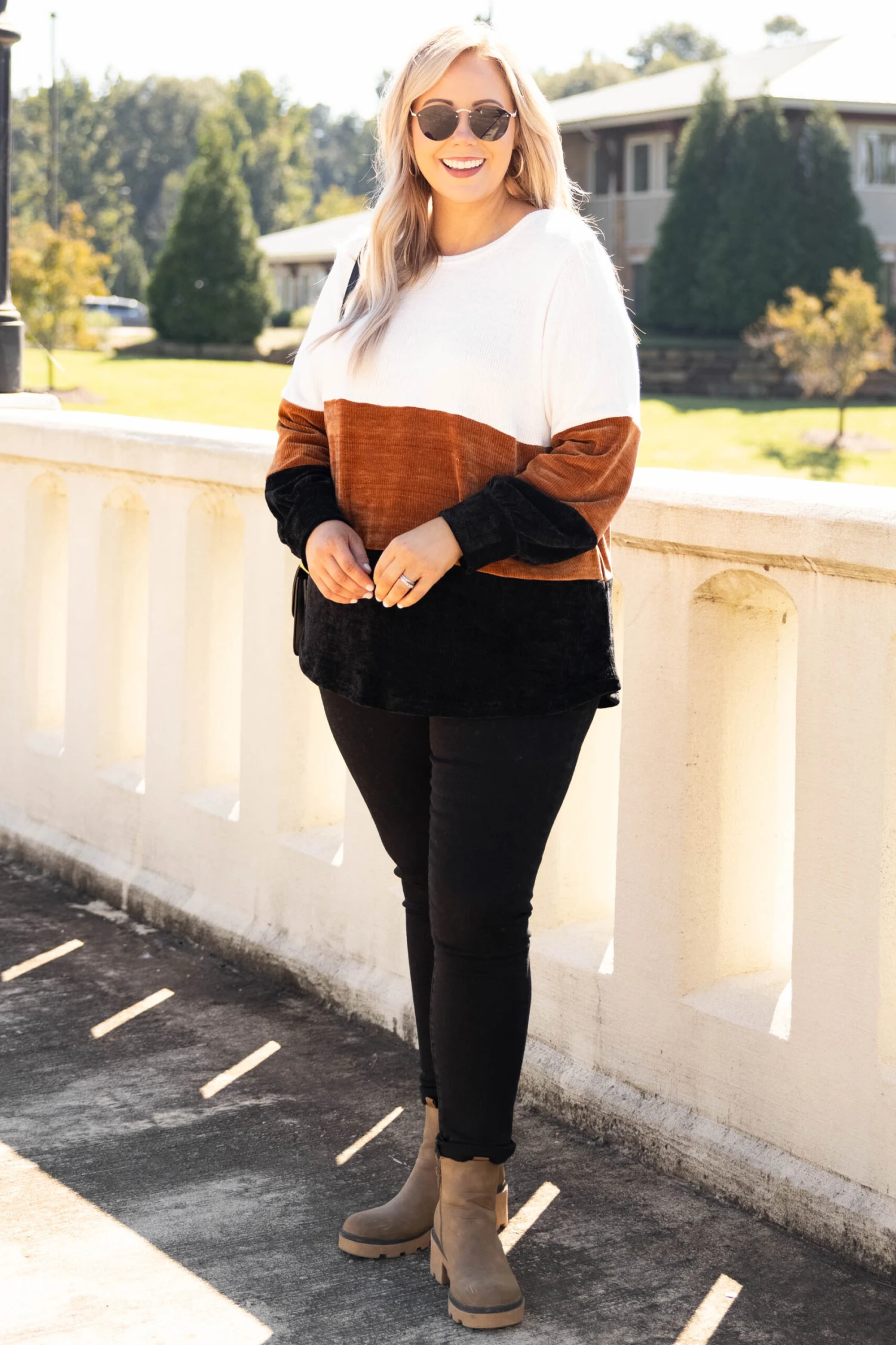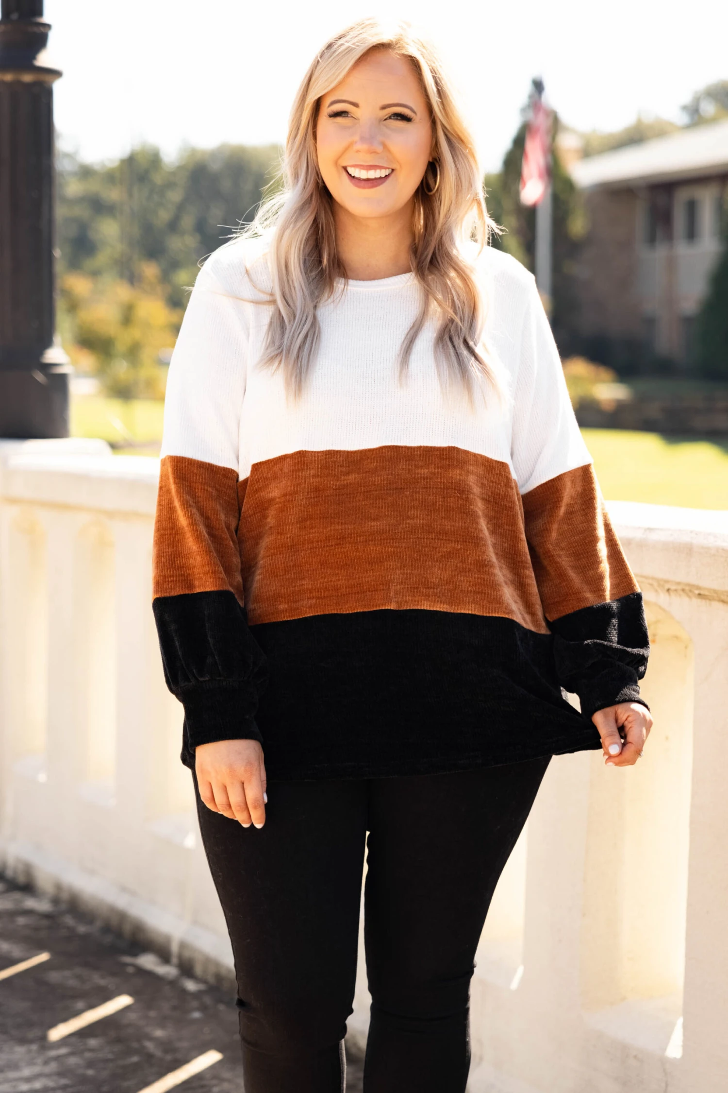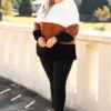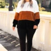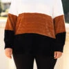 You will strike everyone’s attention in this sweater! It has the cutest bubble sleeve and a color block print with beautiful bold colors! You can dress this sweater up or down and pair it with everything in your wardrobe! It’s comfortable for all-day wear and has a figure-flattering fit! Pair this sweater with cute skinnies and booties!