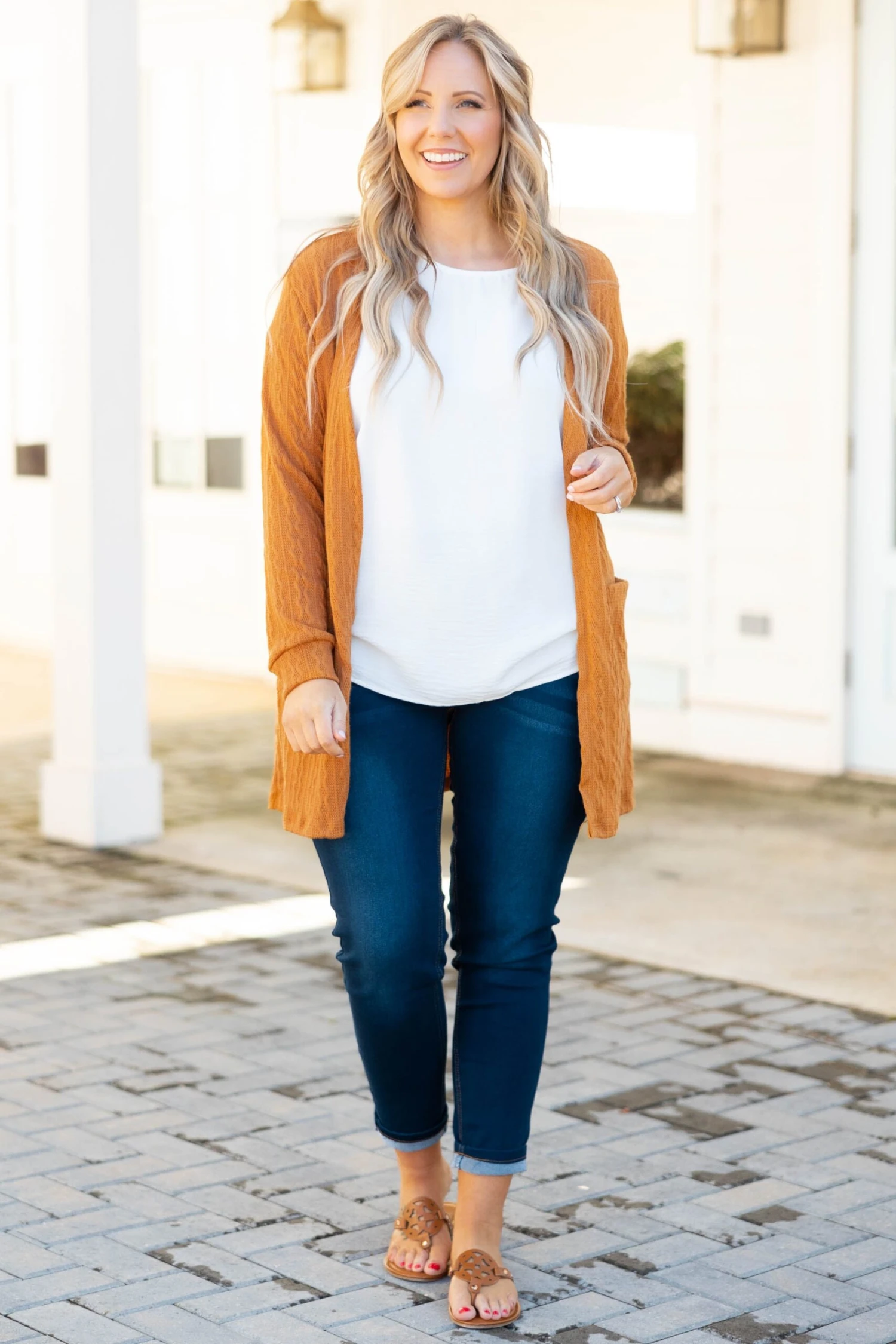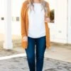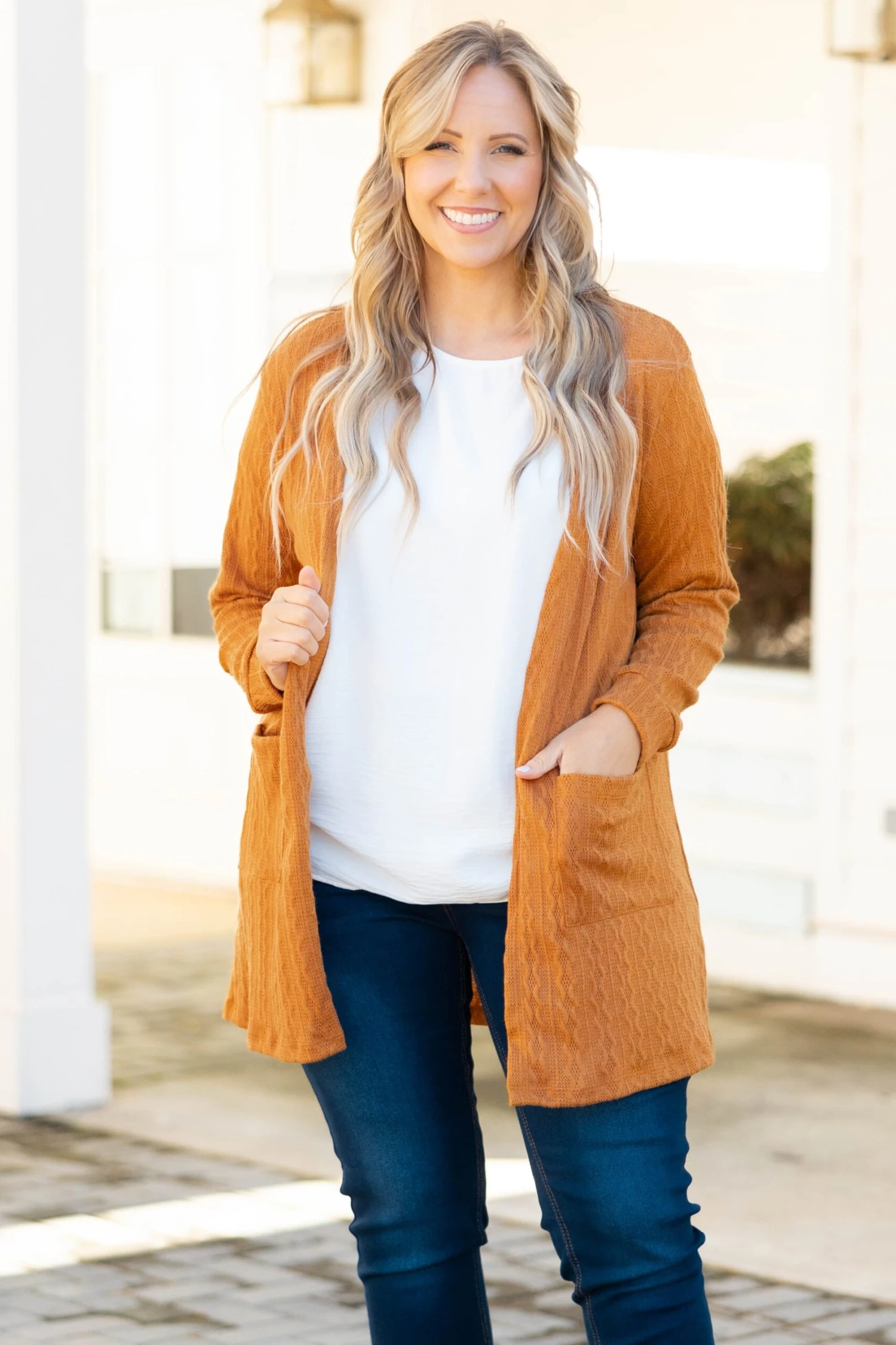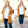 You’ll leave a lasting impression on the crowd in this beautiful cardigan! The mocha color and ribbed texture is SO cute and trendy! The stretchy material is so comfy and is perfect for every day wear! Style this cardigan with a solid top and skinnies for a casual, chic look!