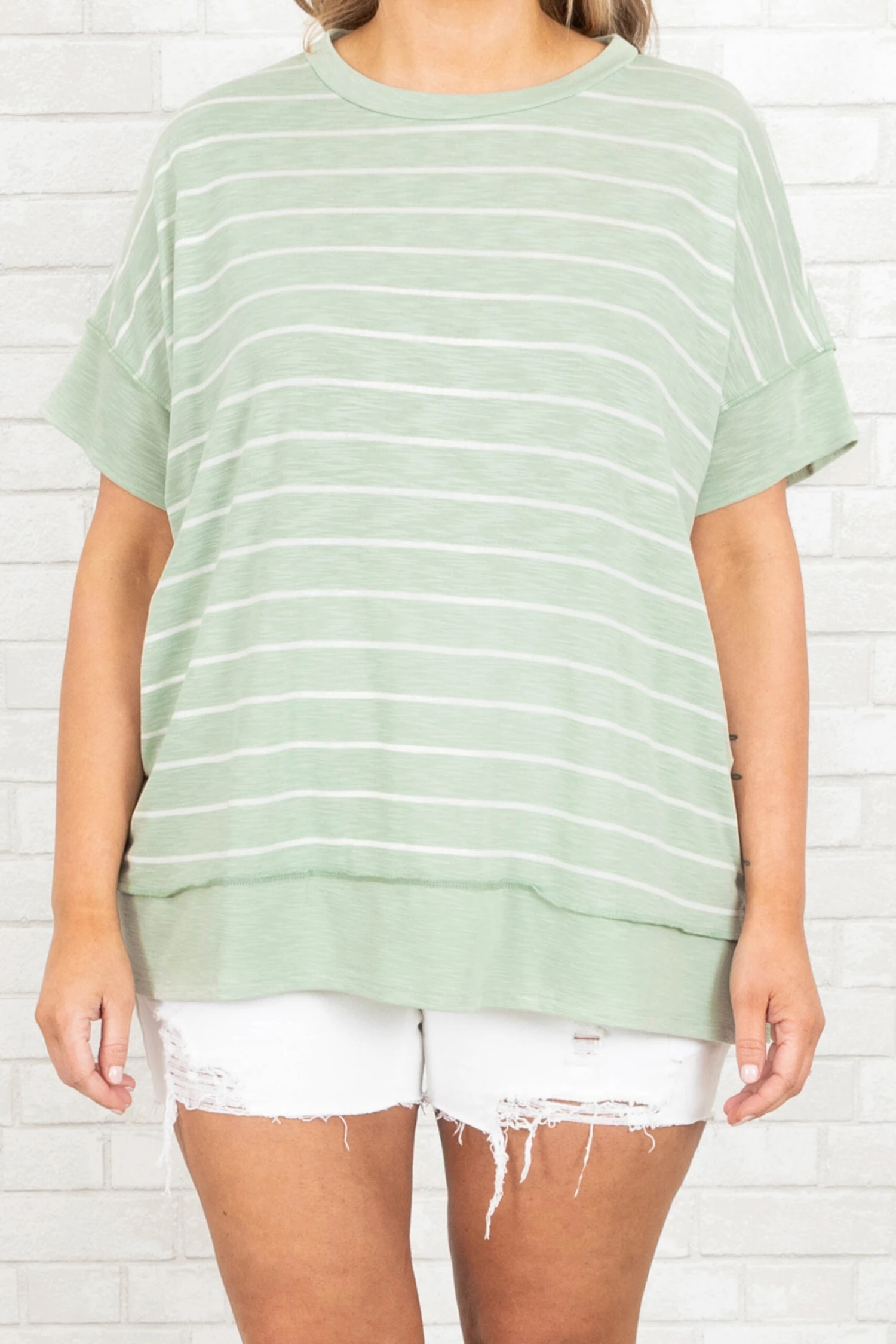 This is the top that you’ll want to wear every day! This top has a lovely striped design and a figure flattering fit that you won’t be able to get enough of!! Comfy and cute is the trend for the season! Style this top with some shorts and sandals for a trendy, chic look!Â