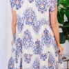 Enjoy a getaway in this fabulous dress! It features functional pockets for convenience and a pretty paisley pattern in a vibrant blue color! Its flutter sleeves add a touch of femininity, making it the perfect choice for a date night!