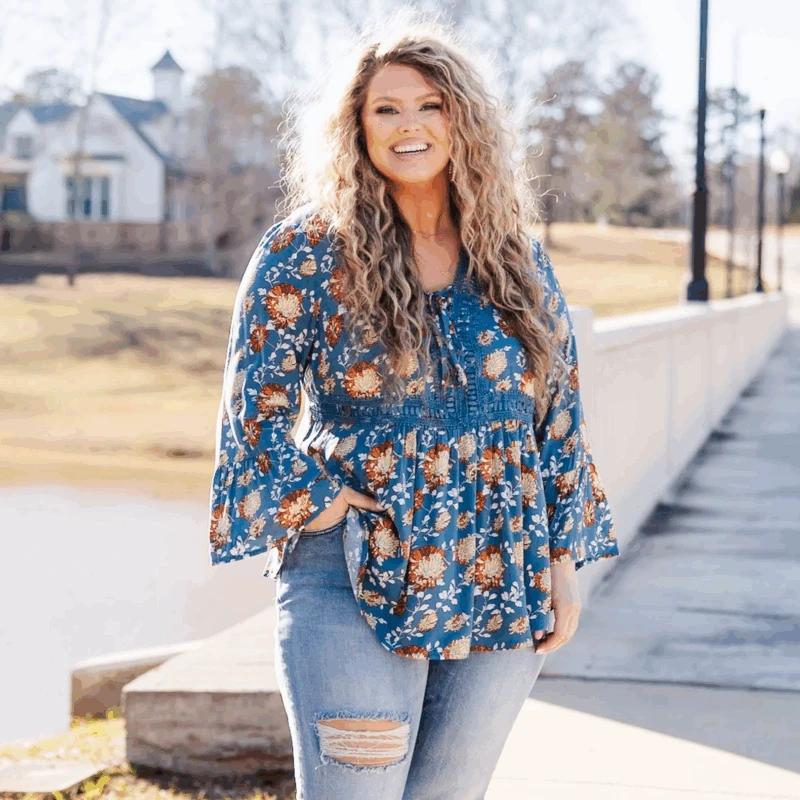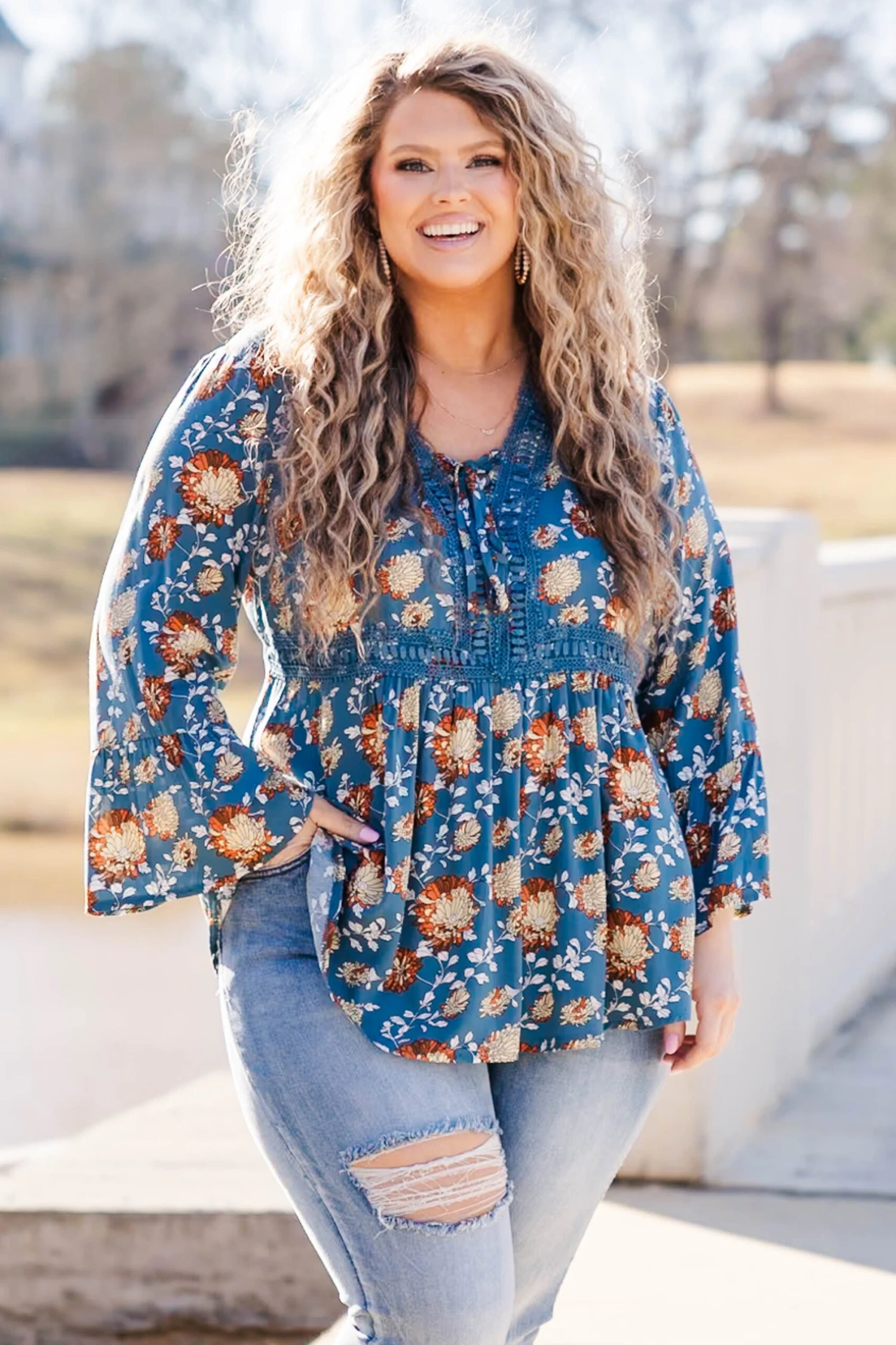 Introduce a timeless style to your wardrobe with this beautiful top! The babydoll design creates a flattering silhouette, while the delicate floral pattern and lace detailing add a touch of femininity! With flowing bell sleeves, this top is perfect for any occasion!