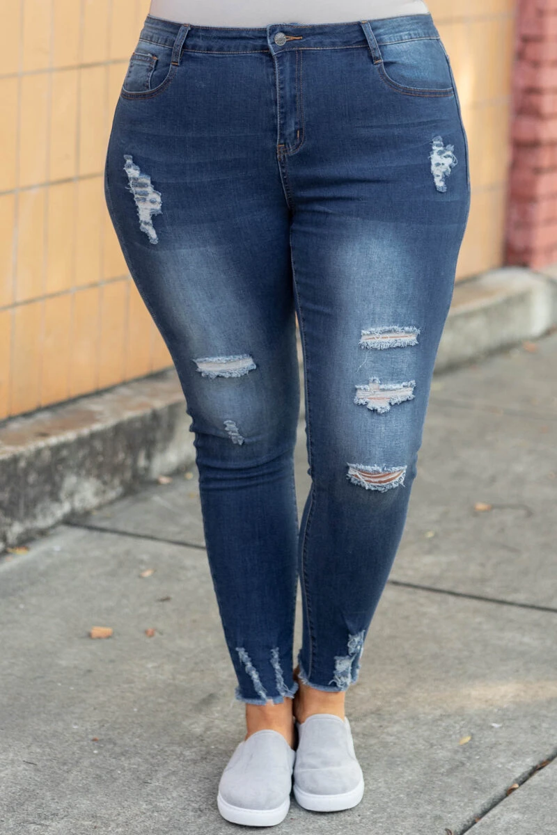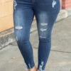 These are the perfect roaming-around jeans! These jeans have a classic dark wash you can style all season long! They’re comfortable for all-day wear, have a figure-flattering fit, and feature the cutest distressing! Simply, style these jeans with a flowy top and sandals for an effortlessly chic look!Â