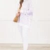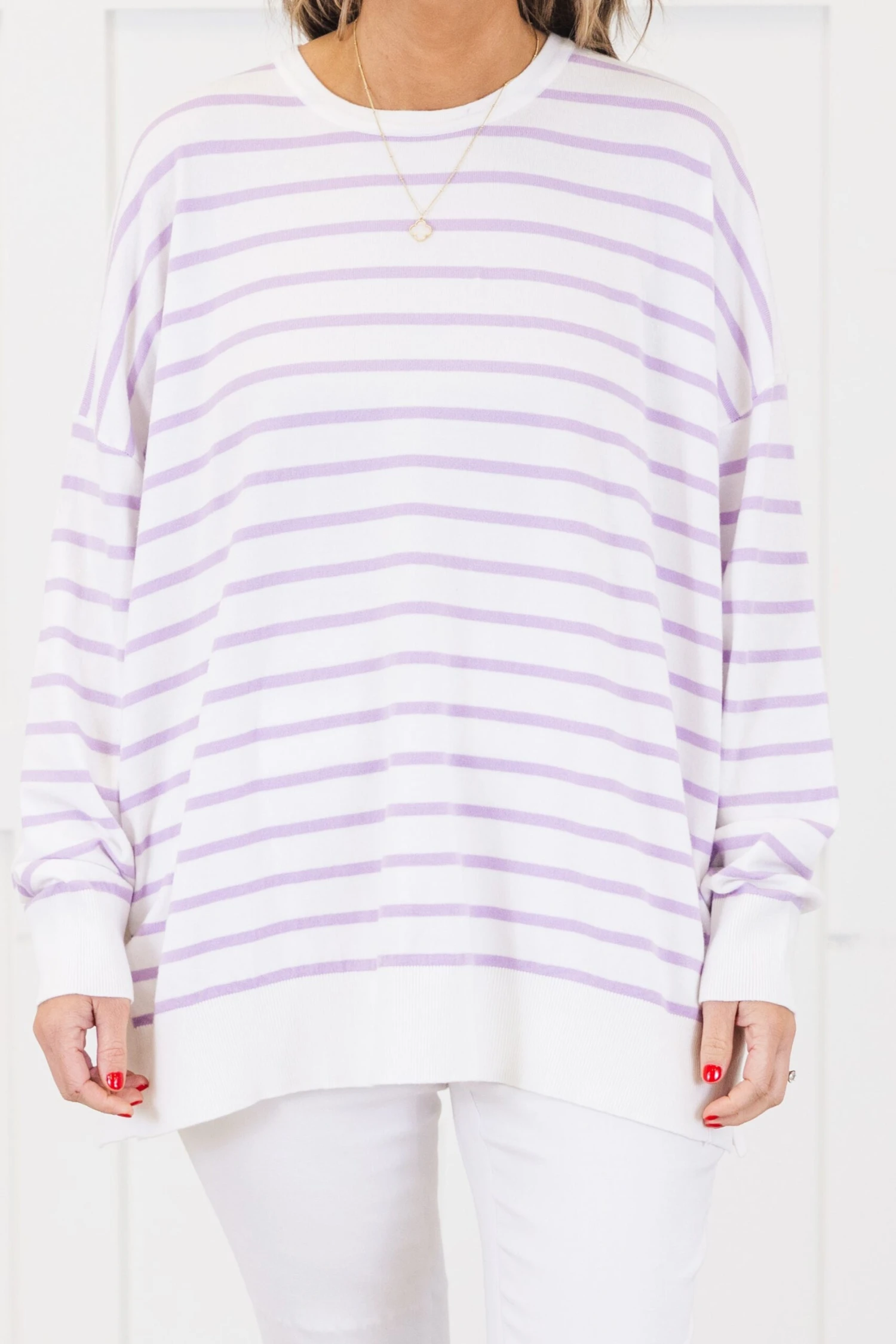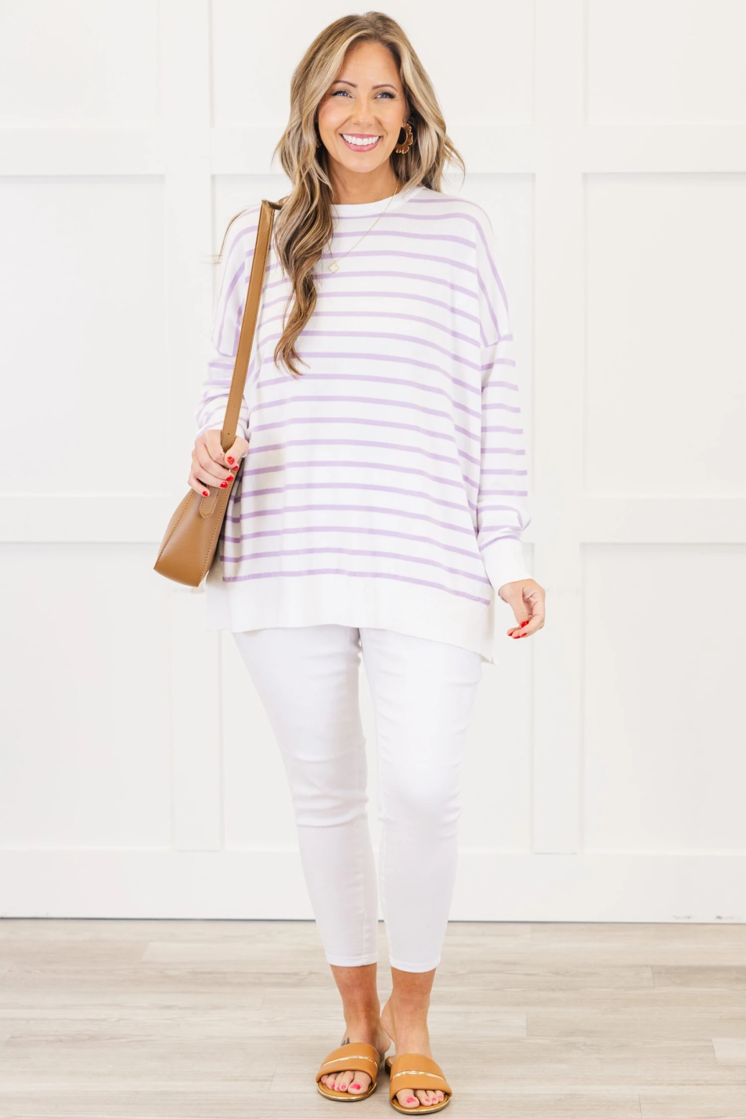 Get cozy and cute in our Romantic Nights Top! This lavender top features stylish elbow patches and a trendy striped design! Perfect for adding a touch of charm to your date night look. Stay warm and chic, all in one!