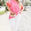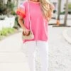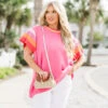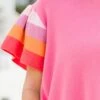 Get ready to turn heads with our Rose Of Yesterday Sweater in pink! With solid pink bodice and playful color block contrast flutter sleeves, this sweater is a perfect blend of style and comfort! The colorful border on neckline and banded hem add a touch of fun to your wardrobe! Time to make a statement!
