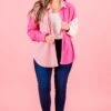 Grab this beauty before it’s too late! Featuring a bold pink multi colorblock design and versatile styling options, this shacket is perfect for adding a pop of color to any outfit! Wear it open over a solid top and skinnies, or button it up for a classic chic look! Expertly crafted and designed for a modern twist on a timeless piece!
