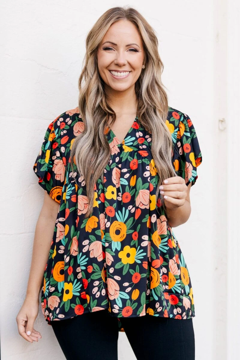 This top is the perfect mesmerizing top for any occasion! Made of a lightweight material with a beautiful black floral design, it pairs nicely with a cardigan and skinnies or leggings for a chic look! Wear it to brunch with friends, to the office, or out for a date, and you’ll look and feel your best!