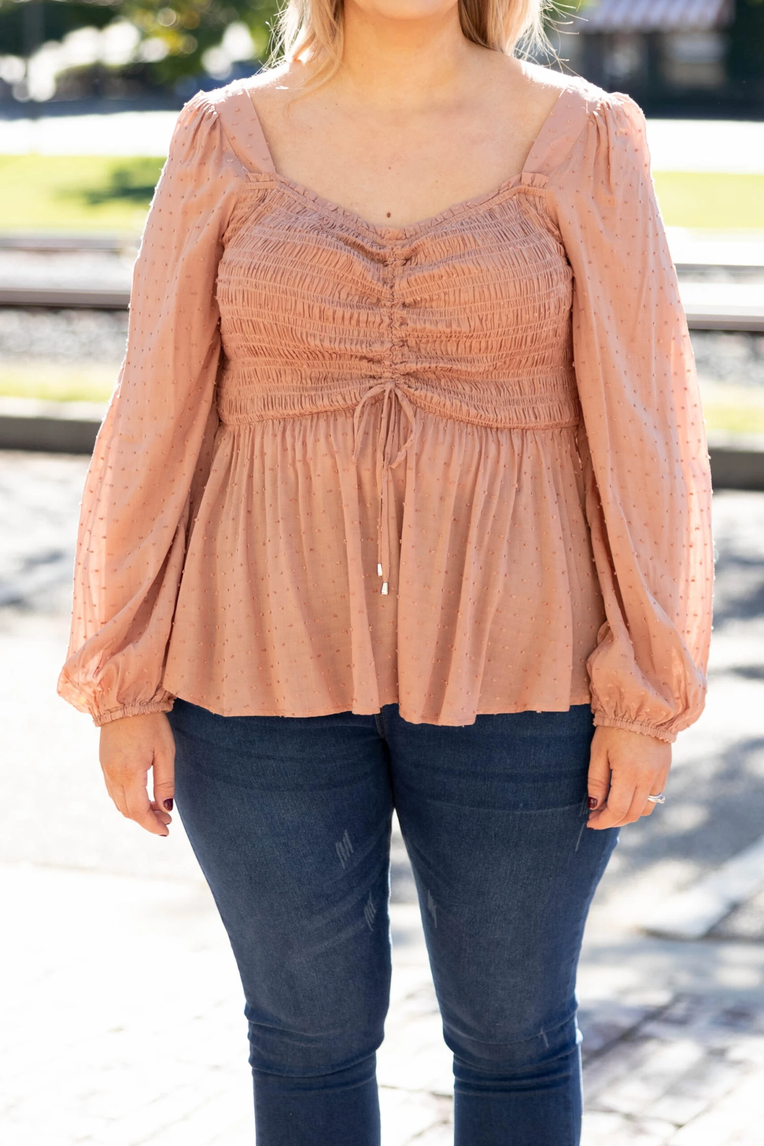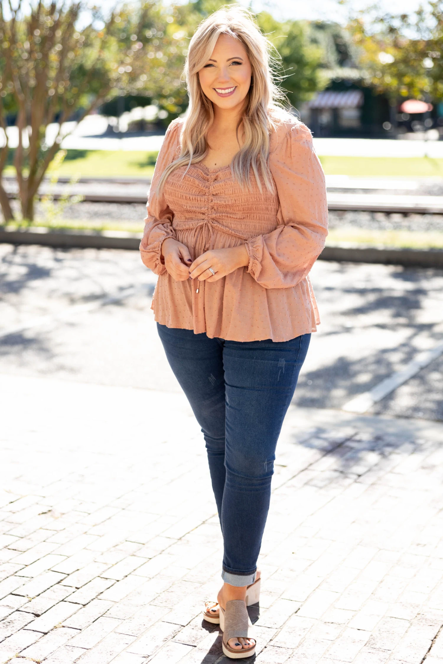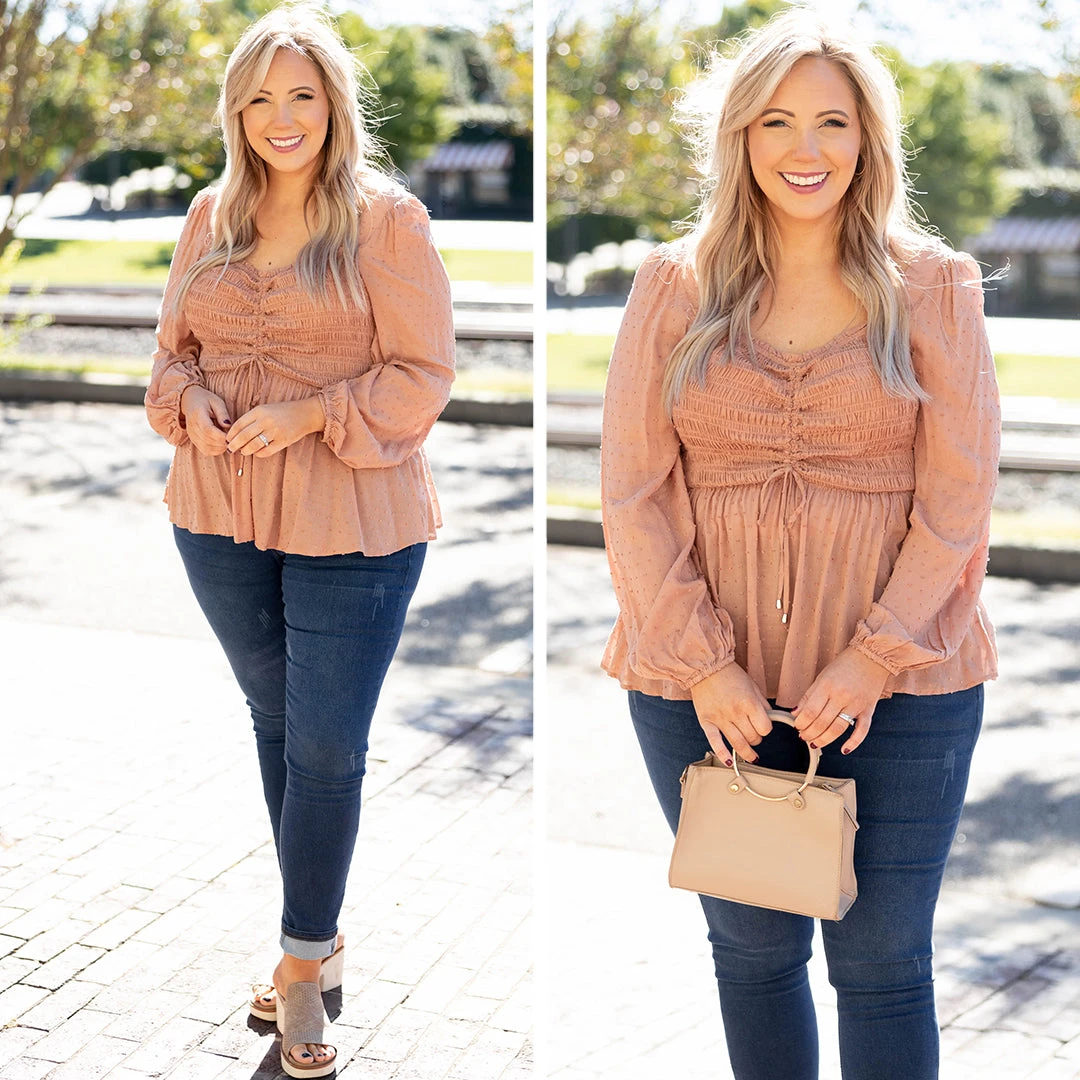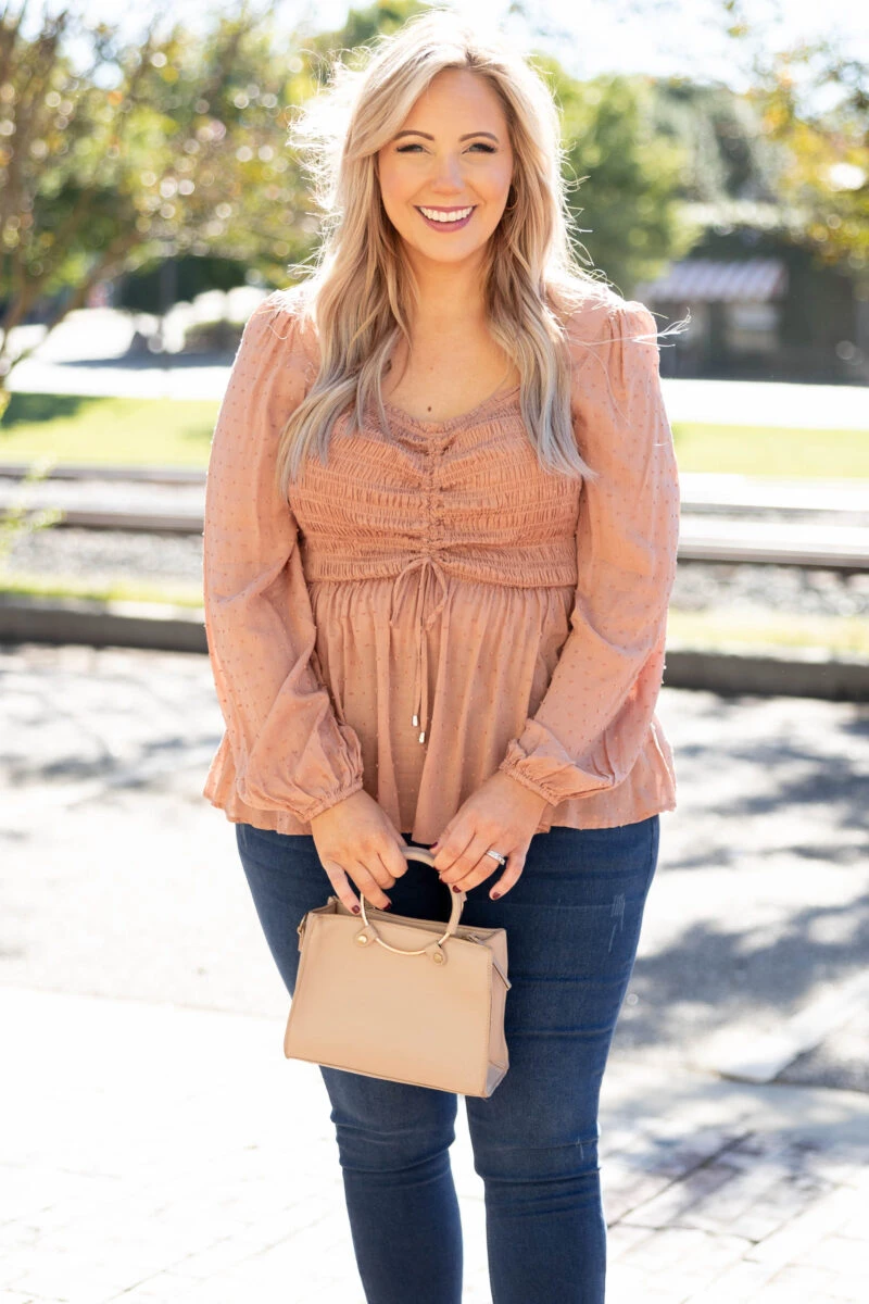 You’ll be rushing back to get this top if you don’t get it today! This top has a classic mauve color and a super soft, comfy fabric! Not to mention the adorable bubble sleeve and raunching fabric on the chest which is sure to keep you looking nice and stylish all season long! Pair it with skinnies and booties for a trendy seasonal outfit!