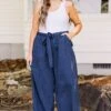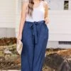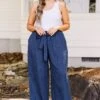 Upgrade your summer wardrobe with our Sandy Shoreline pants! These navy pants feature an elastic waistband and removable sash, effortlessly combining comfort and style! Mix and match with a white bodysuit or our Easy Breezy Top, Navy Blue for endless outfit options! Perfect for a day at the beach or a night out!
