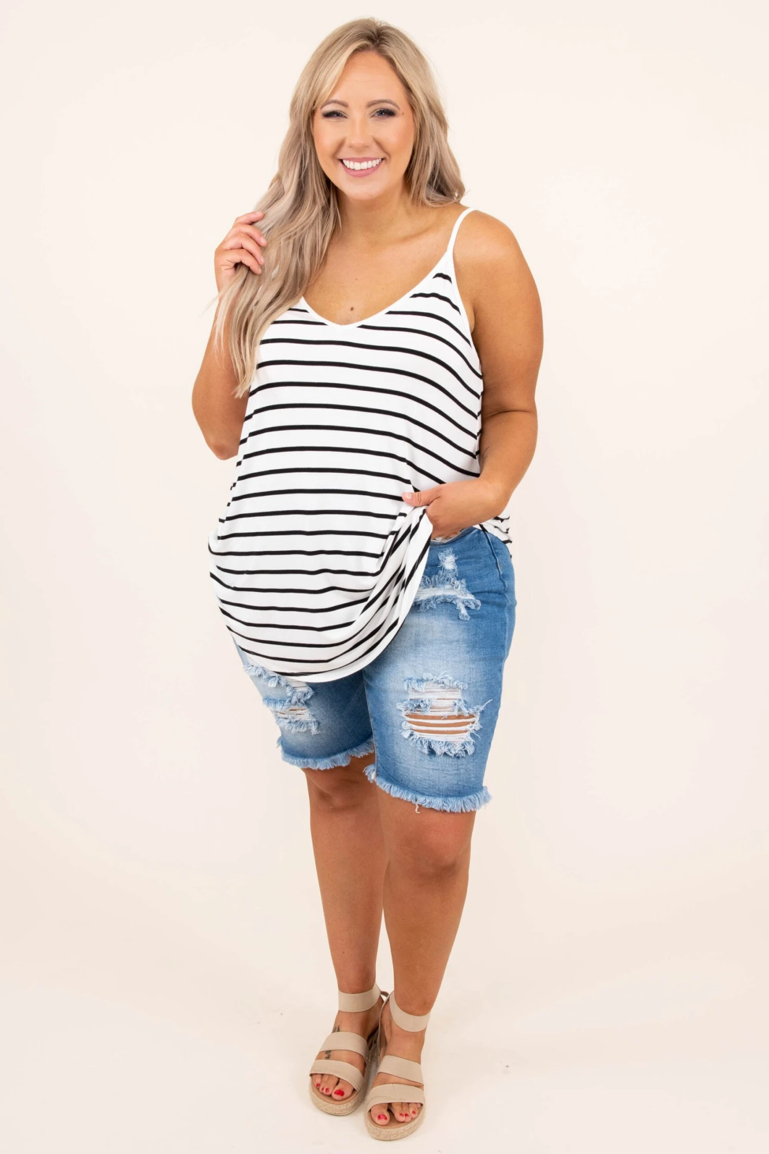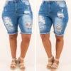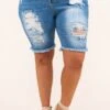 These shorts were made for Saturdays! These shorts have a classic medium wash you can style with your favorite pieces! They’re comfortable for all-day wear, have a figure-flattering fit, and feature the cutest distressed and frayed hemline! Pair these shorts with a flowy top and sandals for an easy everyday look!Â