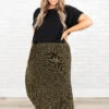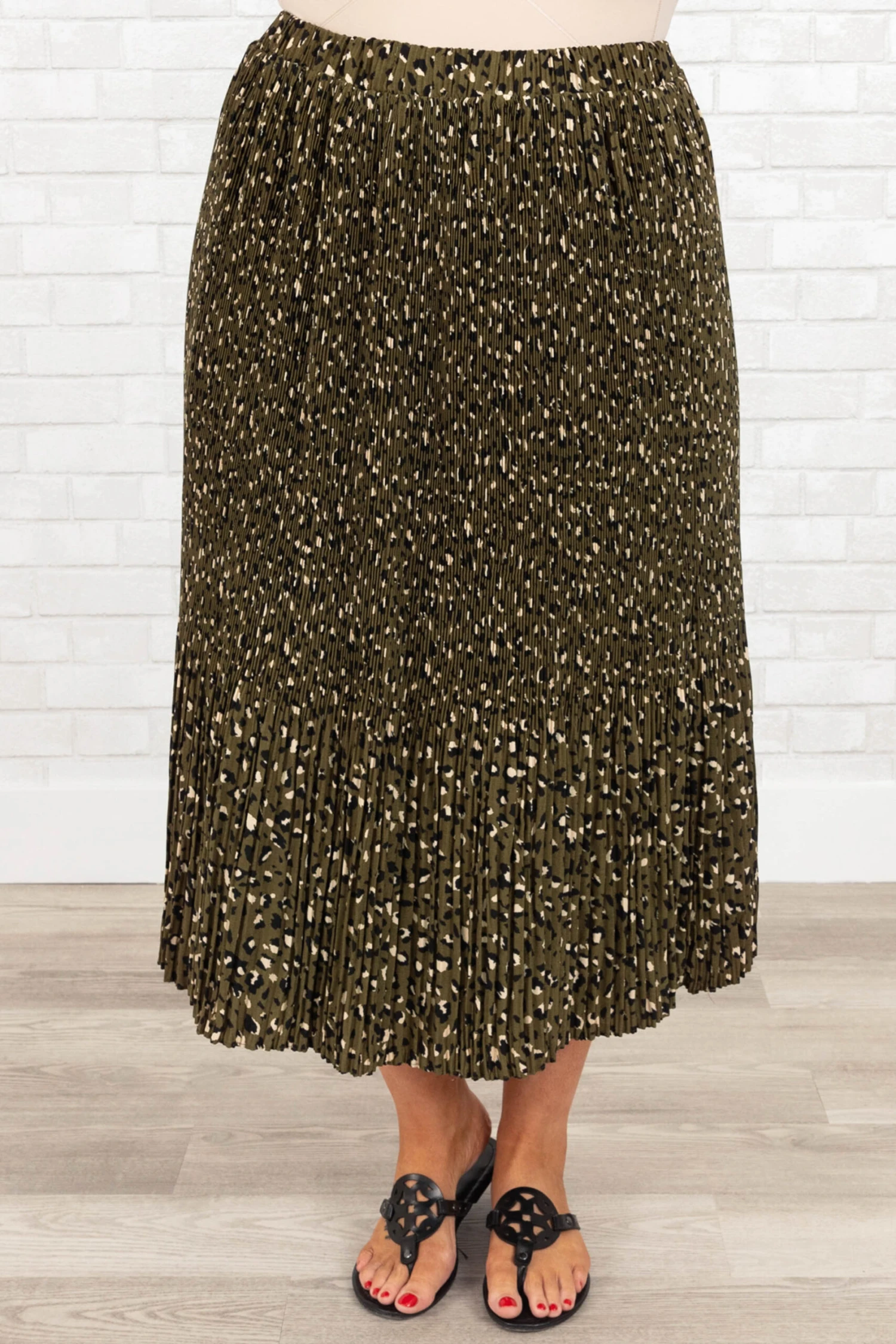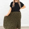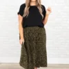 Take the scenic route through town while wearing this cutie! This skirt has a bold green color with a trendy leopard pattern that is a season fave! The flowy fit and midi length makes this skirt perfect for the office or a day out on the town! Style this skirt with a cute top and heels or sandals for the ultimate chic look!