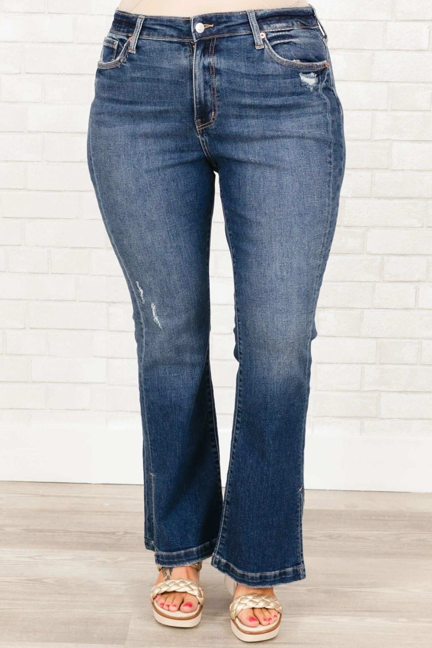 If you are looking for your new favorite pair of jeans, look no further! These jeans are made with a flare design and figure-flattering fit that will help you look and feel your best! The medium wash is versatile enough to dress up or down any look, perfect for any occasion!