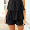 Take a stroll along the ocean in this dazzling black romper! Flaunt your style on date night with this beauty! This flirty design features delicate spaghetti straps and a flowy fit for a look that is sure to turn heads! Crafted from quality materials, you can trust this romper to last through multiple occasions!