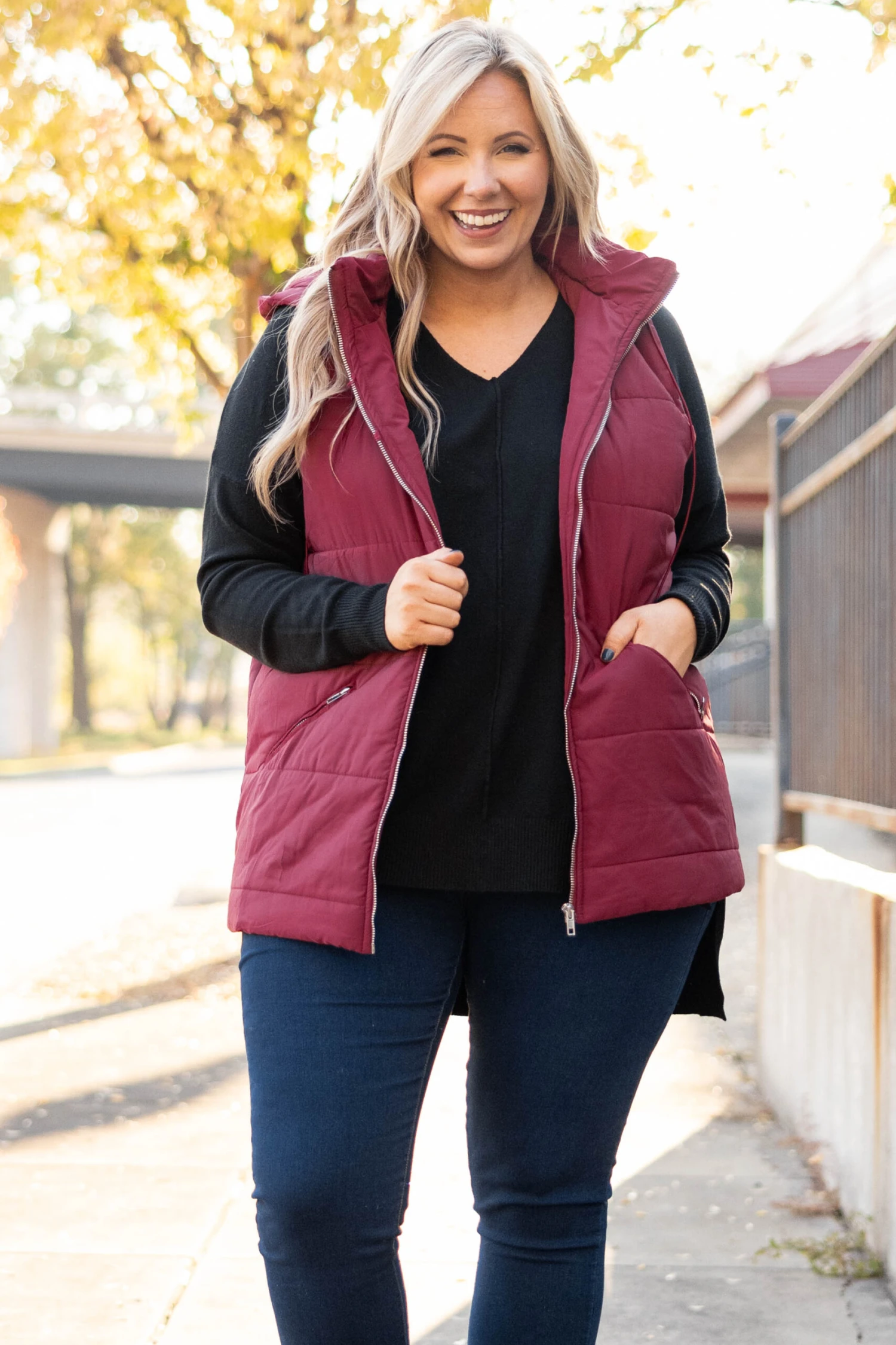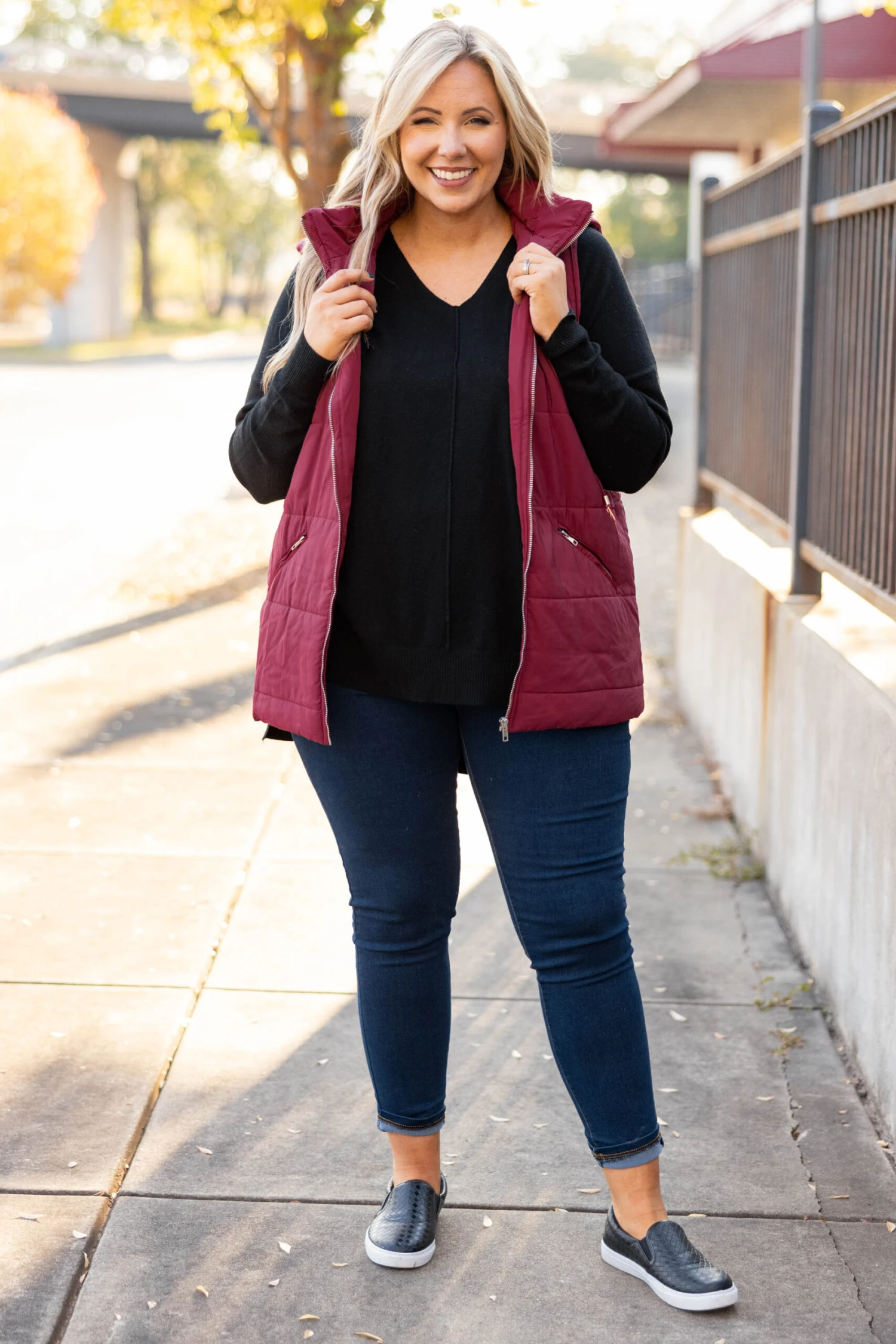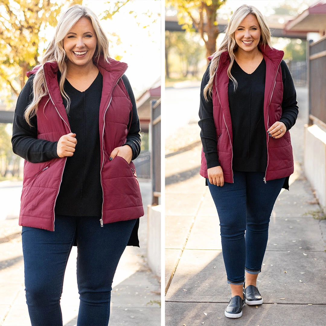 As the seasons change, you should definitely add this puffer vest to your lineup! It has functional, zipper pockets and it is SUPER comfy! Style this burgundy vest over all of your favorite tops or dresses this season for a classic, chic look!